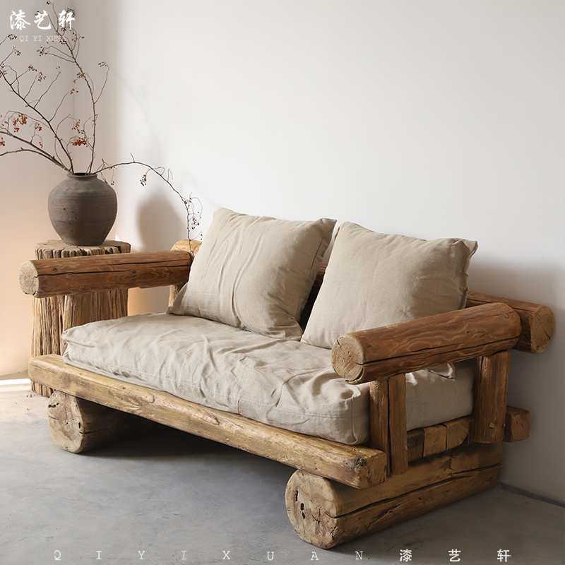 寂風原木全実木亜麻ソファー民宿家具客間は老木二人三人ソファーを解体することができる