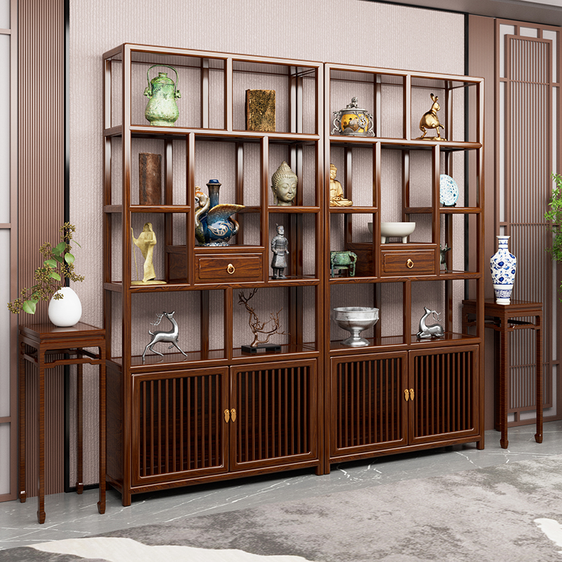 Bogu ラック無垢材新中国風 Duobaoge ニレ茶ディスプレイキャビネットリビングルームアンティークパーティション収納ラックディスプレイキャビネット