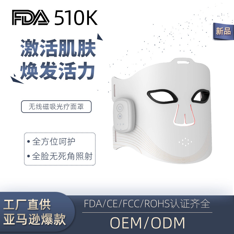 无线磁吸红光面罩FDA510K红蓝光LED大排灯面部嫩肤电子红外美容仪