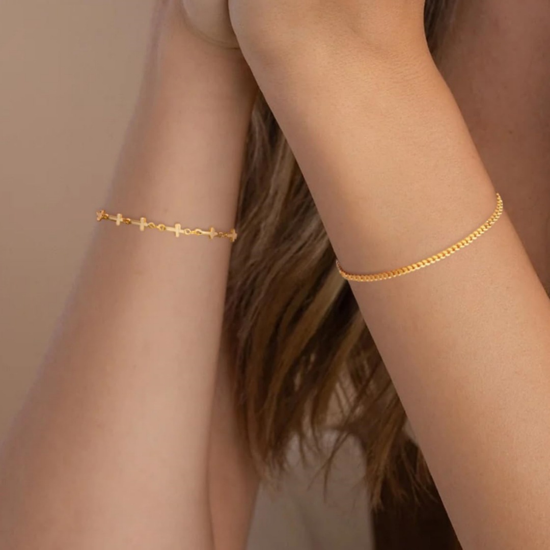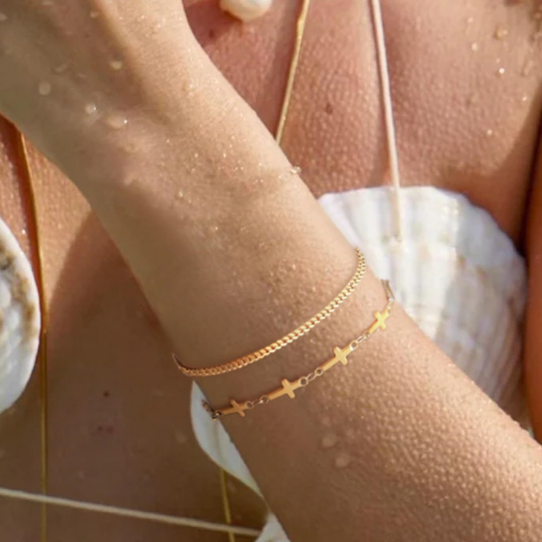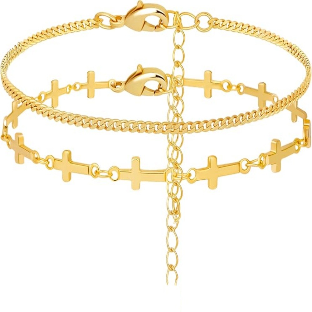 欧米のクロスボーダーの装飾品のファッション的な大衆のinsの風の幾何学の十字のブレスレットの簡単な百合の2層のつなぎ合わせの手の装飾品