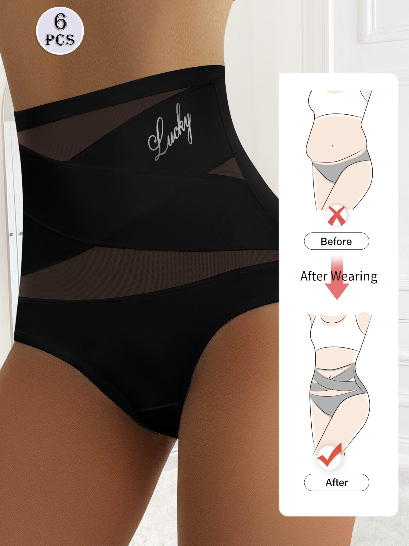 跨境temu高腰无痕收腹女士内裤提臀大码内裤收腹交叉标准美码tk