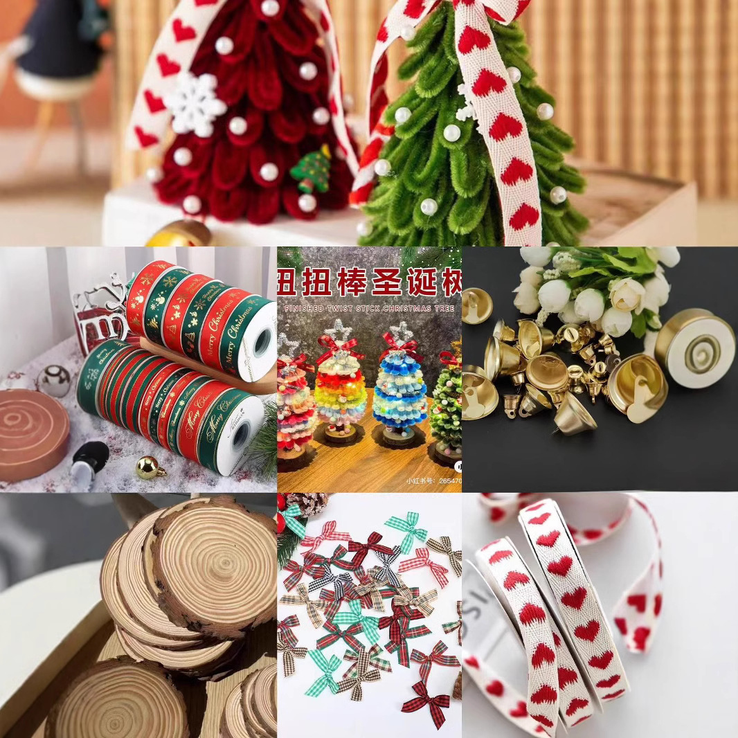 クリスマスツリーのアクセサリー手作りdiy材料バッグ風鈴格子蝶結びヘラジカリボンクリスマス原木ベース