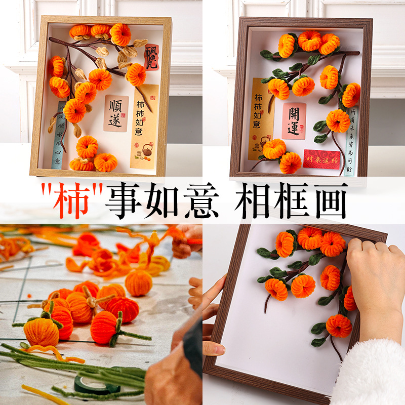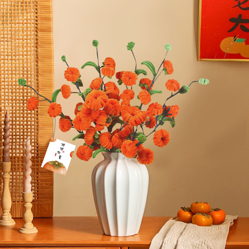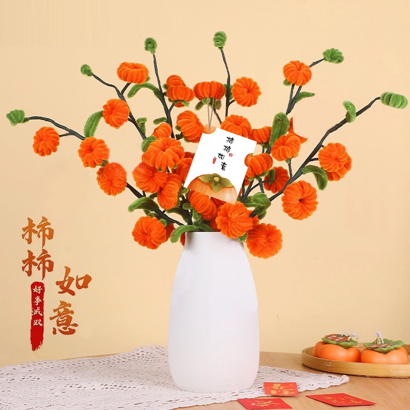 柿柿如意手作りdiyツイスト棒花束材料包子供制作暗号化毛根条柿の木の置物