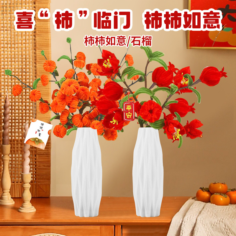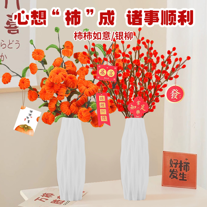 新年手作りdiy柿如意ツイスト棒花束材料包2025旧正月暗号化毛根柿置物