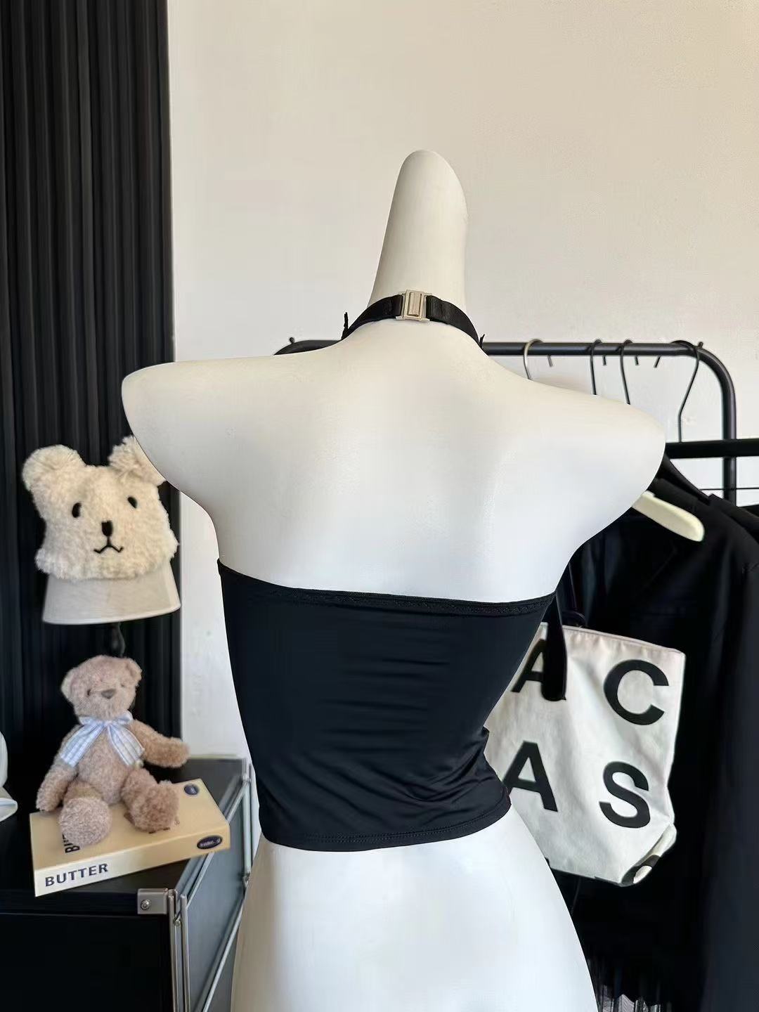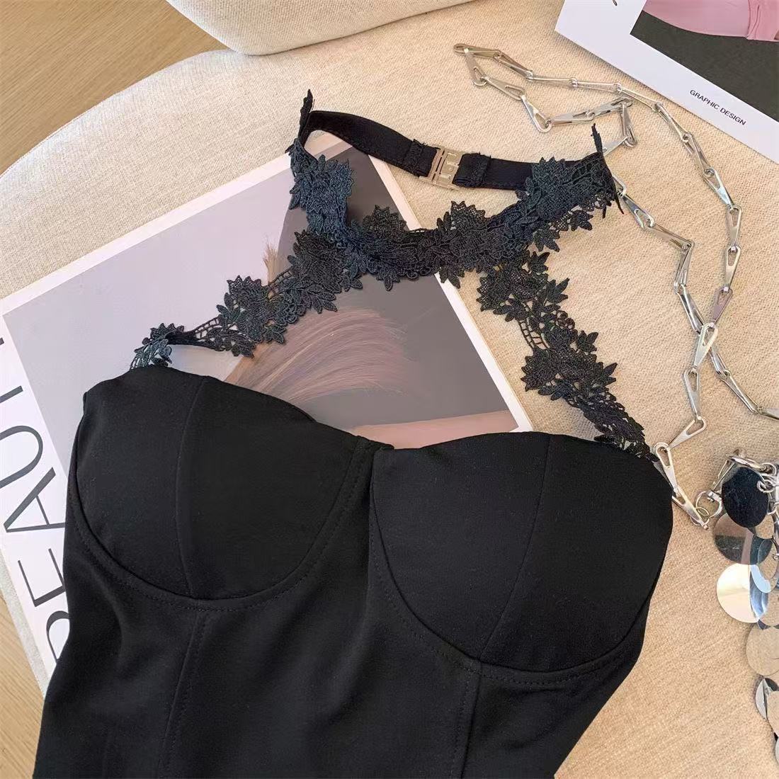 レースリボンの胸のパッドの袖なしの首のサスペンダーのベストの女性の夏の新型の修身はやせているショートタイプの独特なショートタイプの上着を現します。