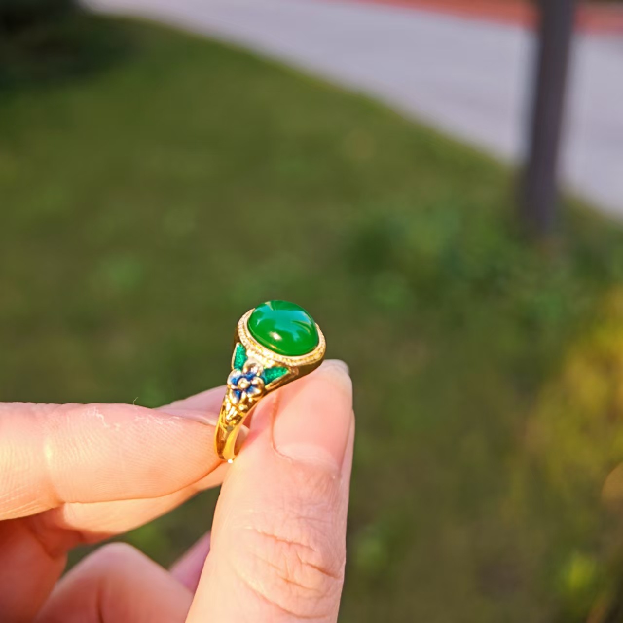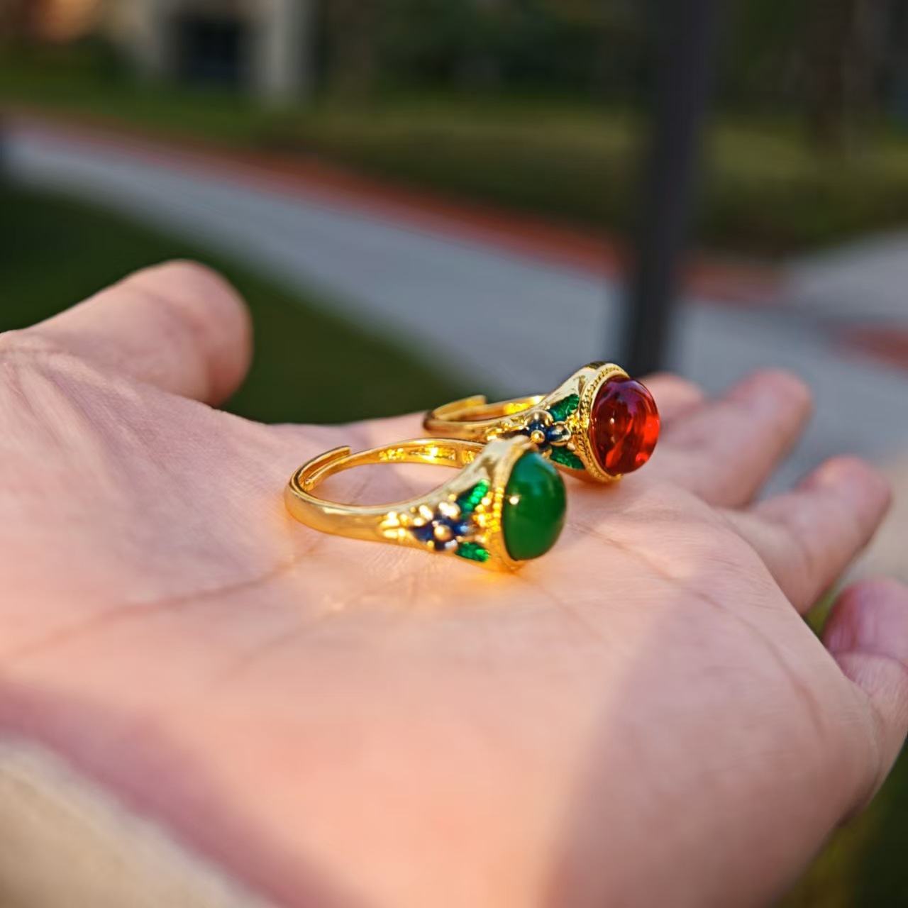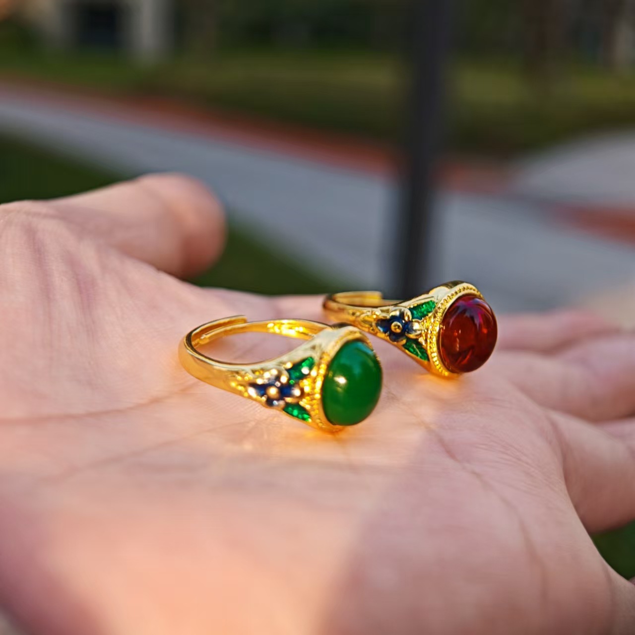 イミテーションゴールドエナメル宝石リング 生放送宮殿スタイルエナメル古代方法オープンリング模造翡翠ゴールドリングシンプルなファッション宝石リング卸売