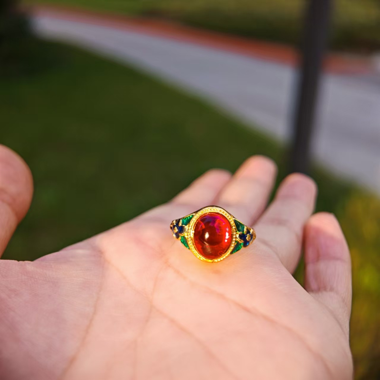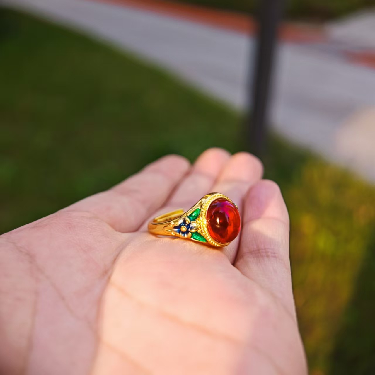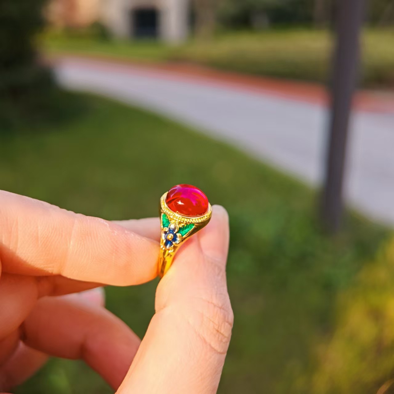 イミテーションゴールドエナメル宝石リング 生放送宮殿スタイルエナメル古代方法オープンリング模造翡翠ゴールドリングシンプルなファッション宝石リング卸売