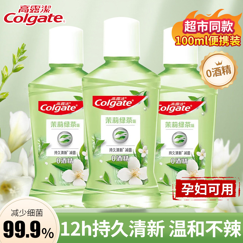 Colgate マウスウォッシュはマイルドで爽やかで防虫性があり、アルコールフリーのジャスミン緑茶の携帯用マウスウォッシュは殺菌して口臭を除去します。
