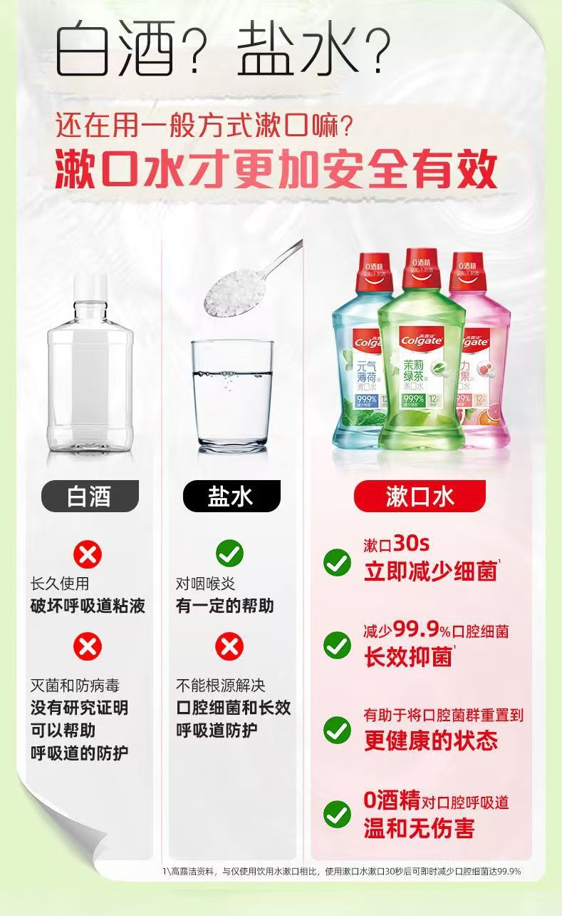 高露洁漱口水口气清新便携一次性无酒精含氟口腔细菌清洁代发批发