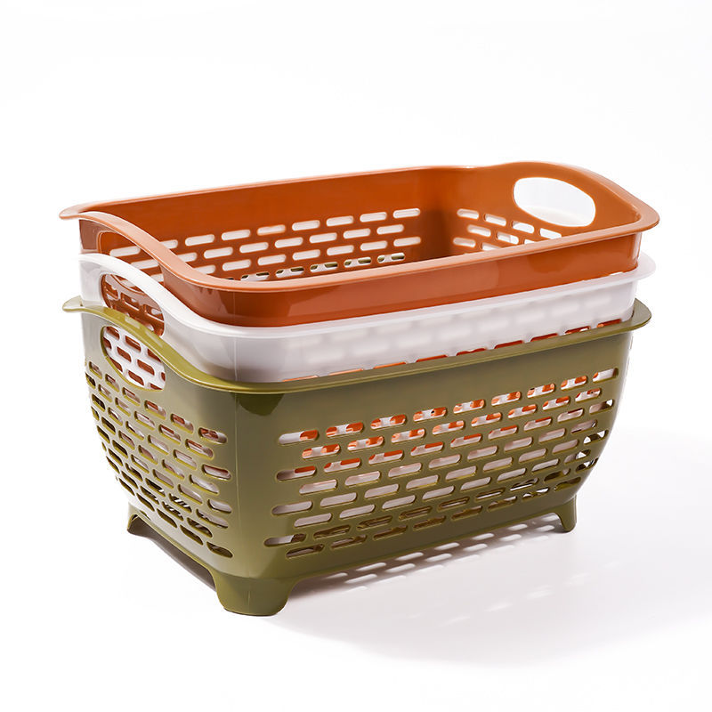 白い排水バスケット,茶色の水切りかご,緑の排水バスケット