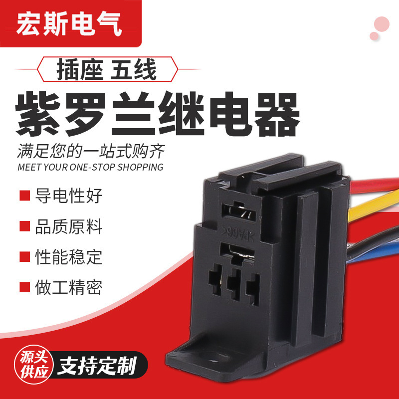 バイオレットリレーソケット4線自動車リレープラグ小型リレーソケットヘッド4線5線