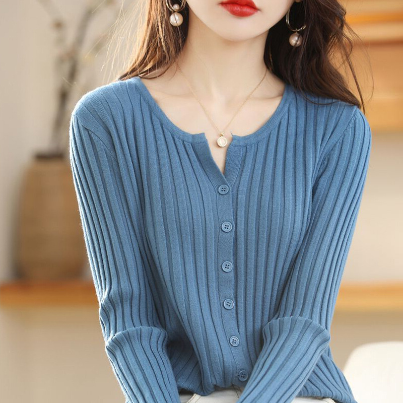 ラウンドネック長袖カーディガン夏薄手コートショールアプリコットセーター春秋無地ショート日焼け止めシャツ