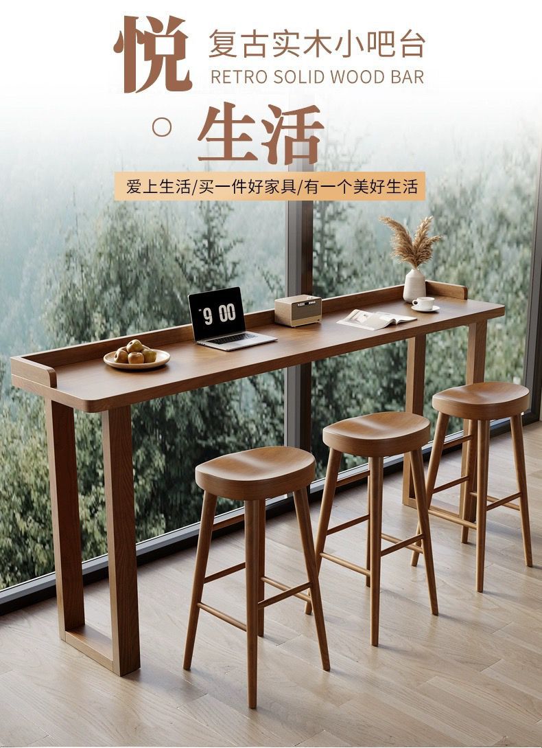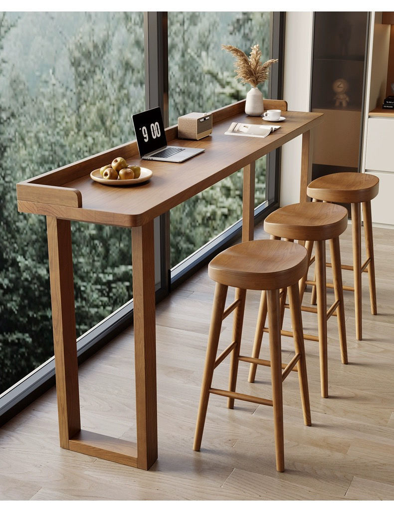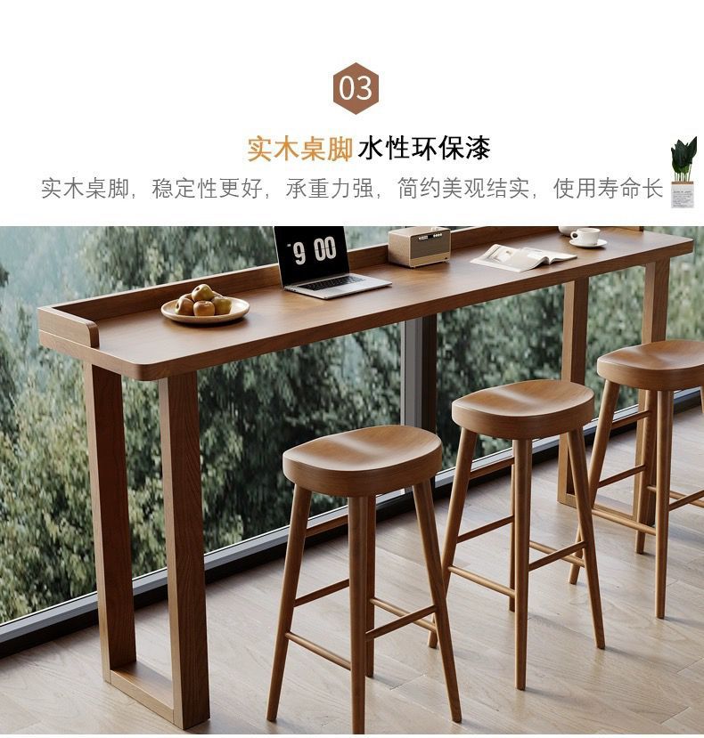 北欧風の実木バーテーブル家庭用ベランダの高足テーブルの長いテーブルは窓の上で軽くて豪華です。