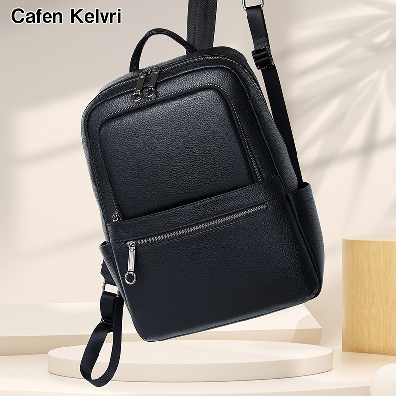 双肩包男士真皮商务休闲电脑包简约大容量新款出差旅行背包潮定制
