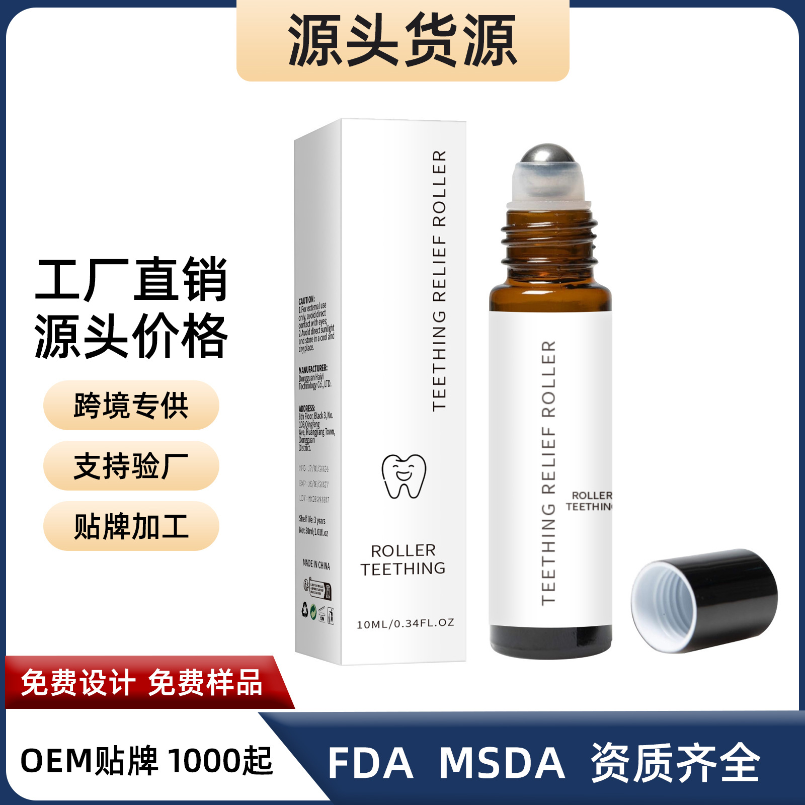 热卖婴儿缓解出牙疼痛精华油Baby Teething Oil Roller10ml