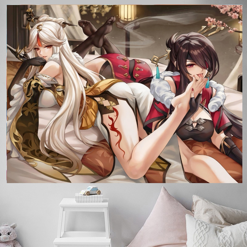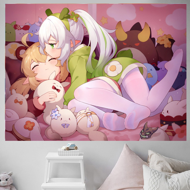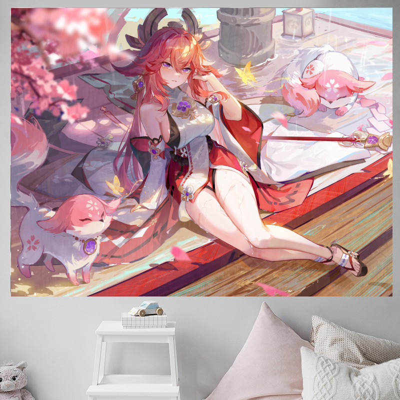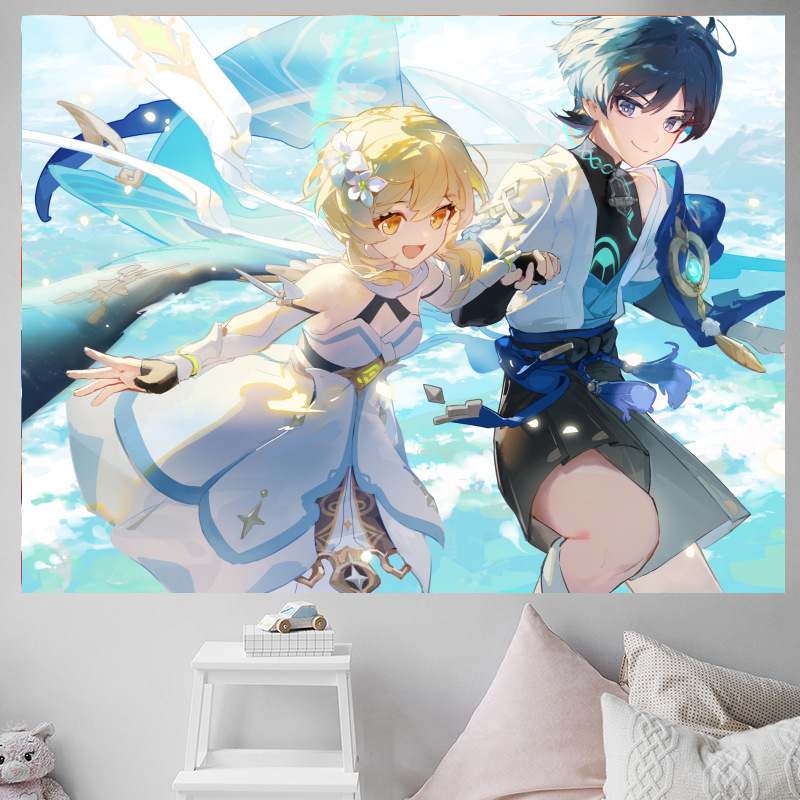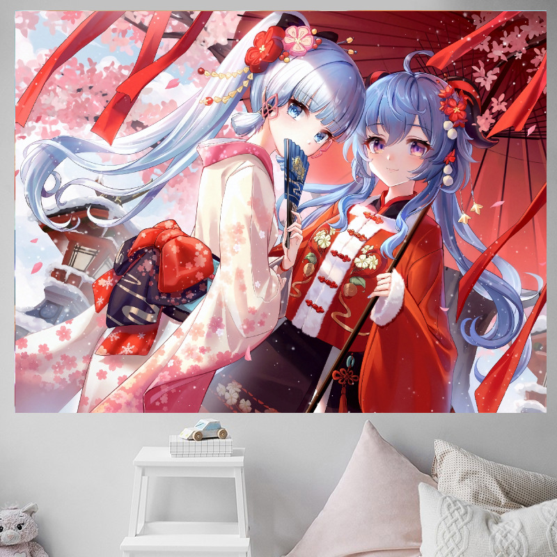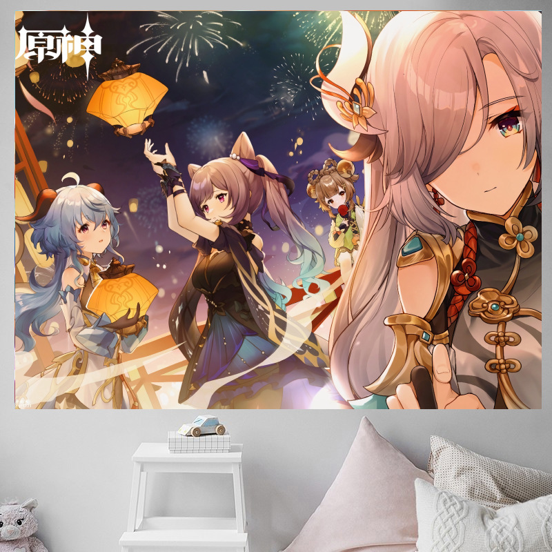 二次元少女原神アニメーション背景布寝室寝室賃貸部屋鍋レストラン装飾壁布吊り布タペストリー