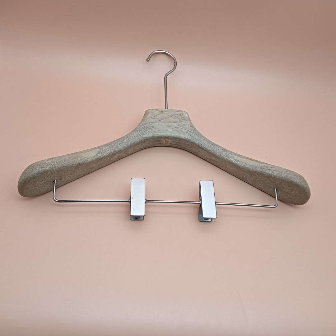 洋服店ホテルのフードの間に専用の樹脂ズボンの棚があります。
