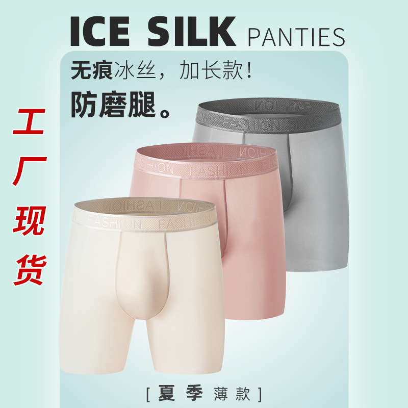 無痕氷糸下着男防磨脚平角ズボン長脚運動下着防磨股通気ランニング速乾半ズボン