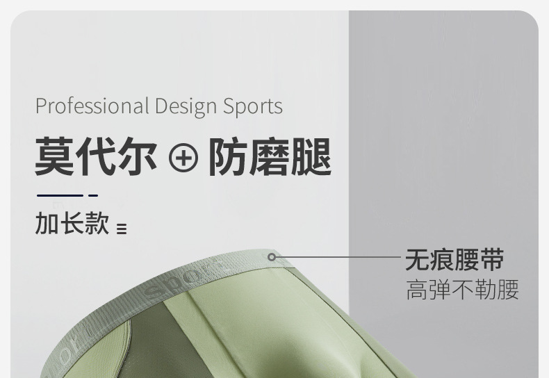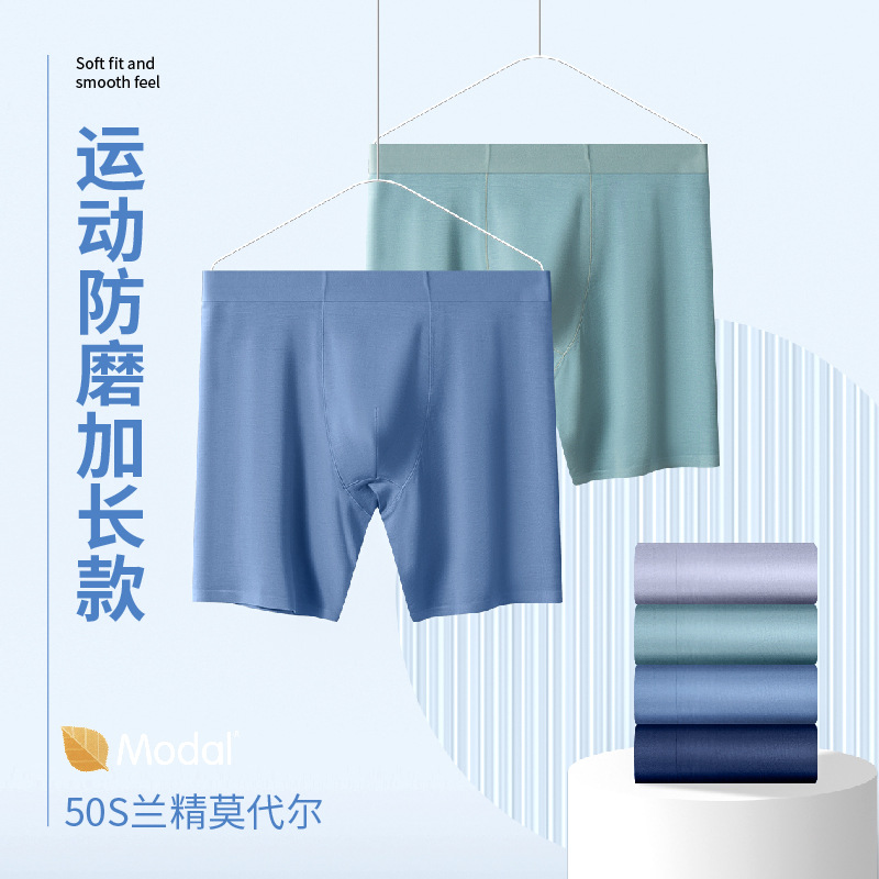 男士防磨腿运动加长腿内裤五分裤50支莫代尔平角裤跑步长款四角裤