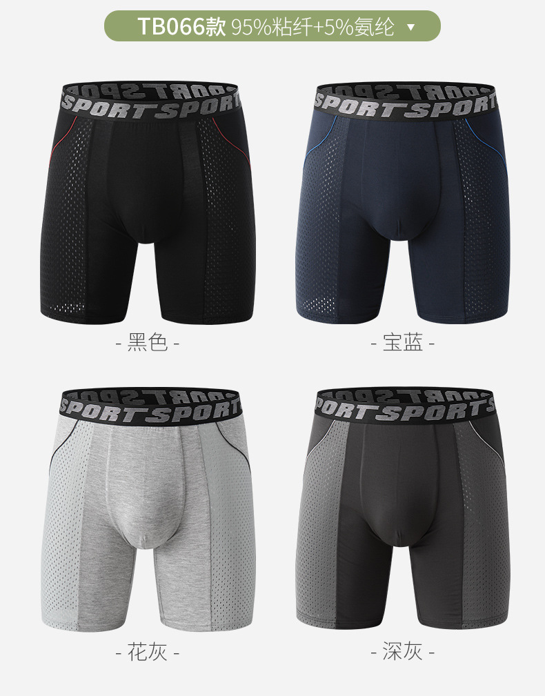 アイスシルクメッシュメンズ下着スポーツランニング拡張耐摩耗脚下着メンズボクサーブリーフロングレッグ5点パンツ