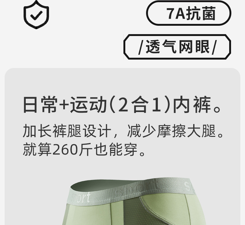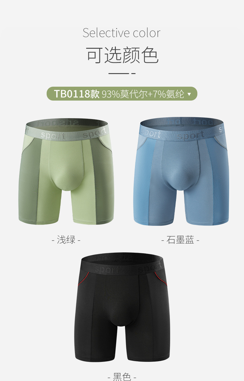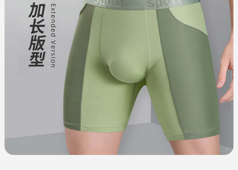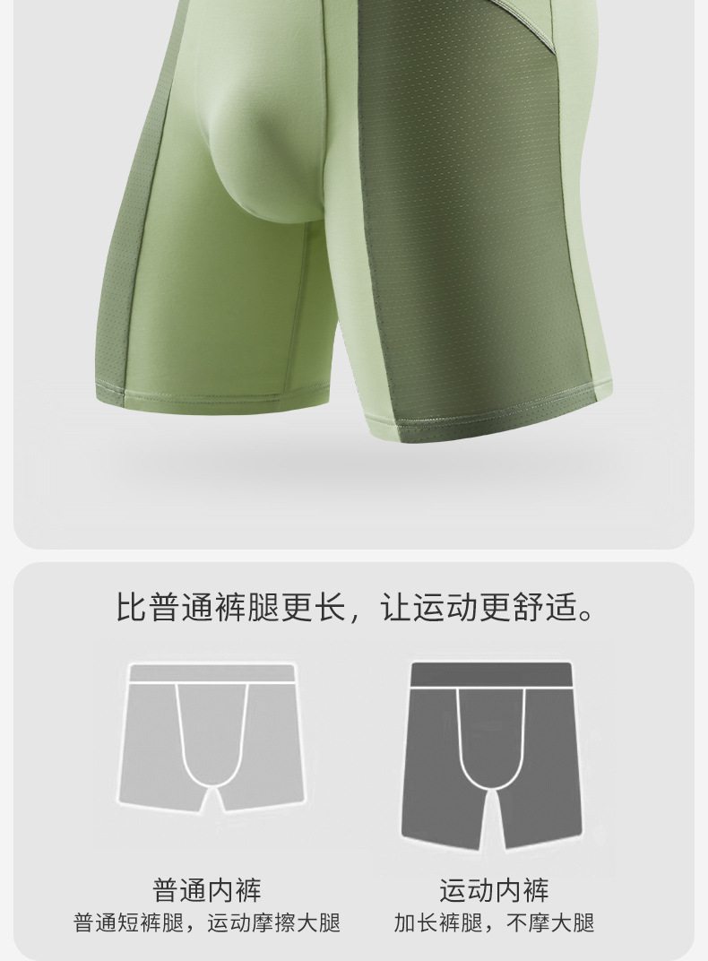 男士加长防磨腿内裤速干莫代尔运动跑步大码平角内裤运动短裤男款