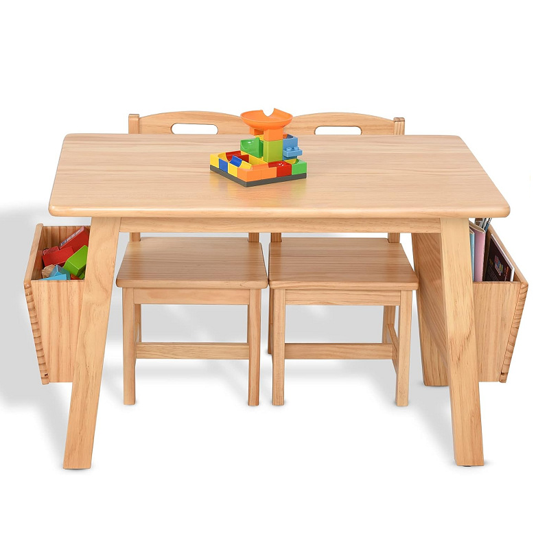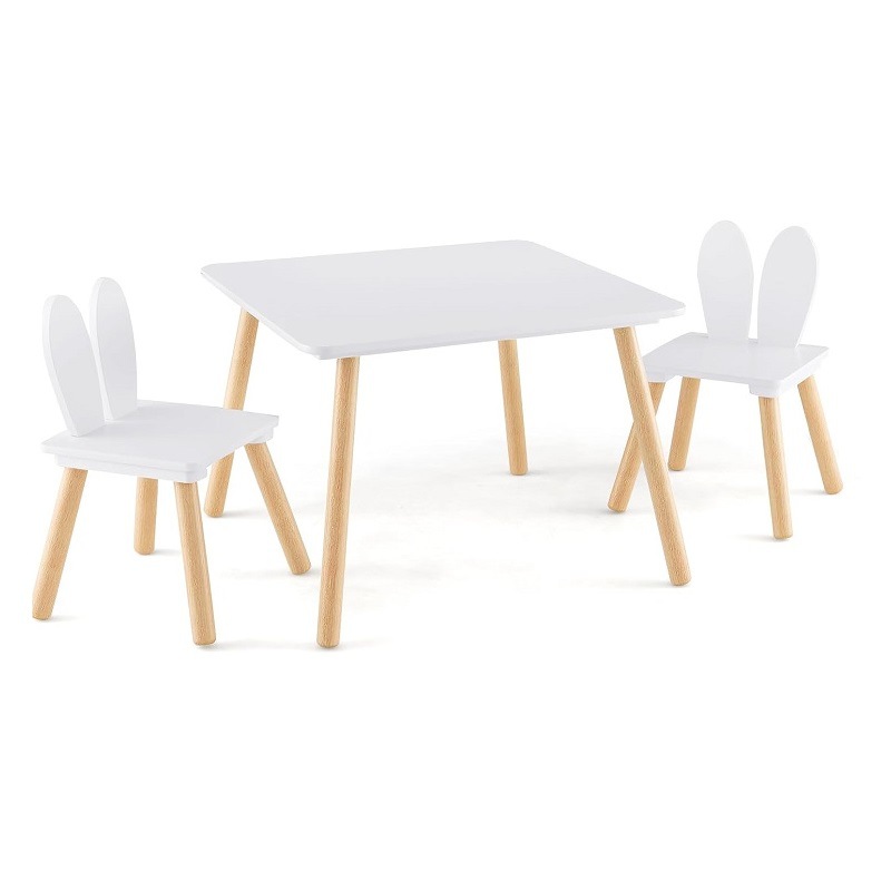 木製の小さなテーブルと椅子のセット子供の実木兎耳椅子の四角いテーブルは3 ~ 6歳の子供に適している