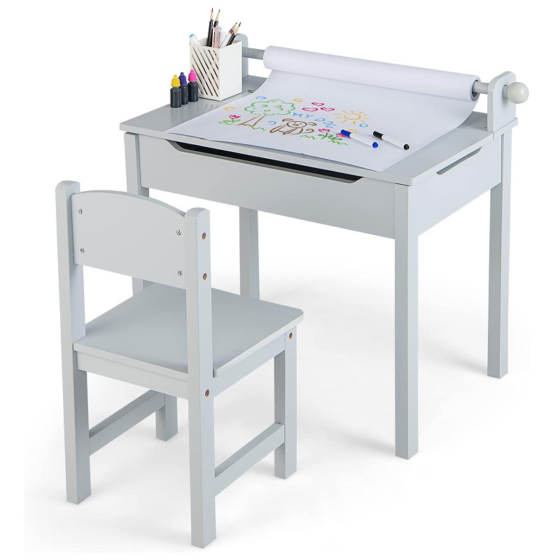 子供用テーブルと椅子セット物置スペース付き木製昇降トップ紙ロール棚工芸美術活動テーブルセット