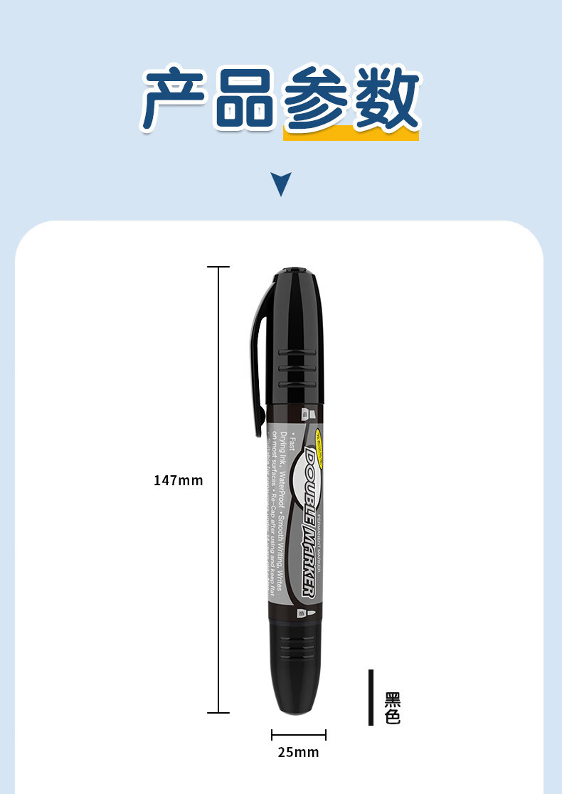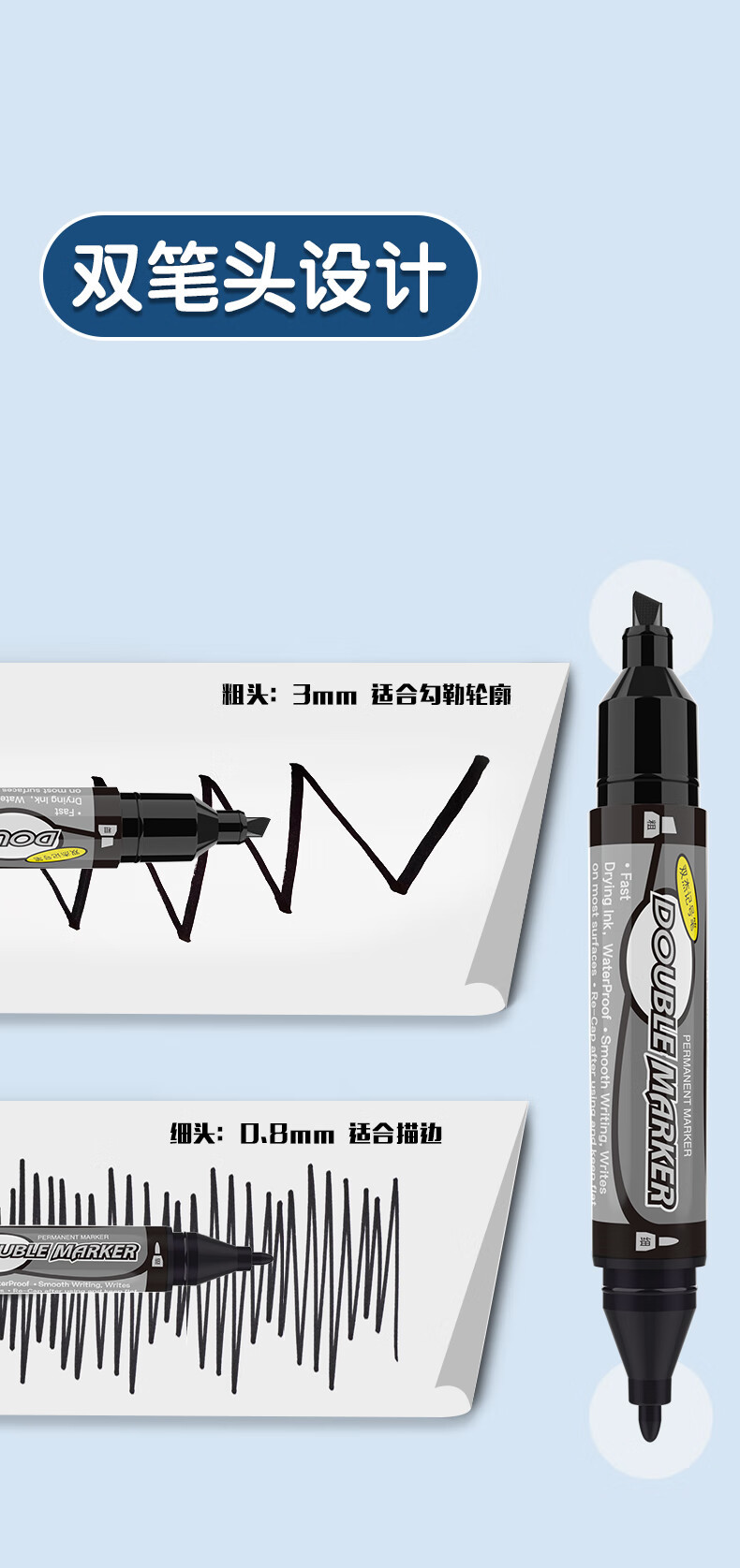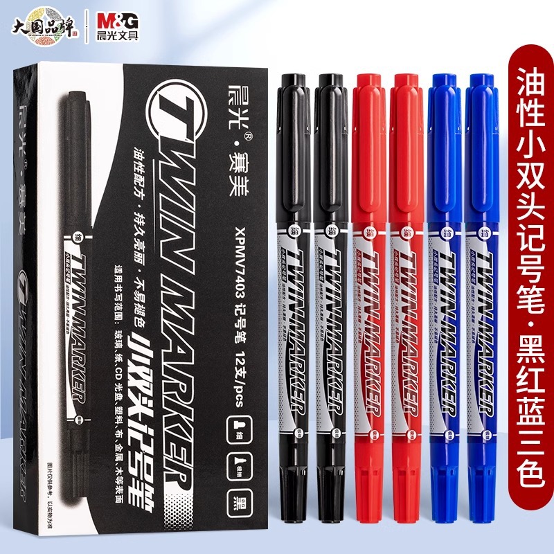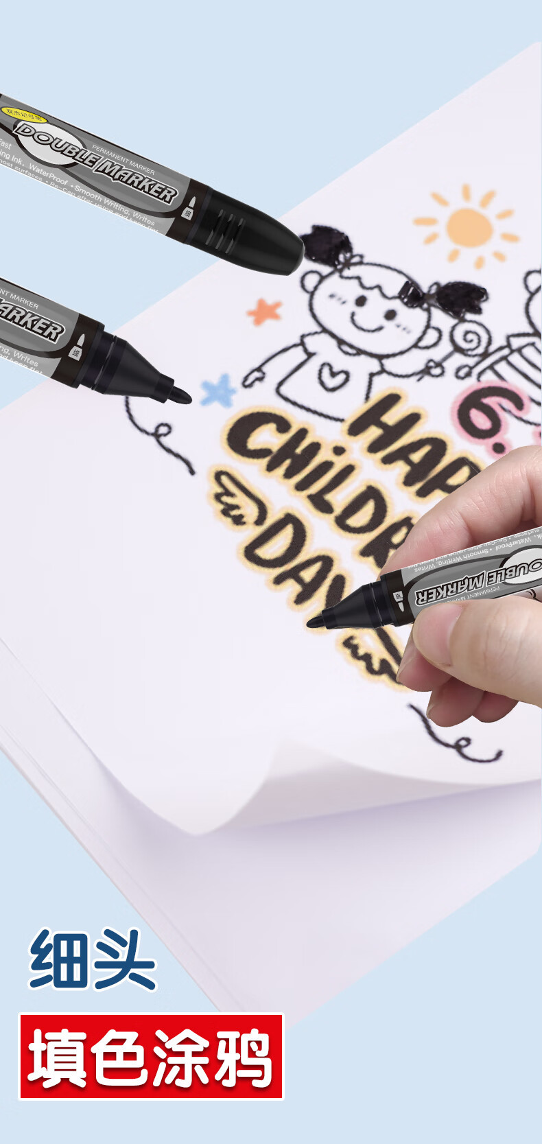 晨光XPMV7403油性小双头记号笔勾线笔美术黑色速干防水防油不掉色