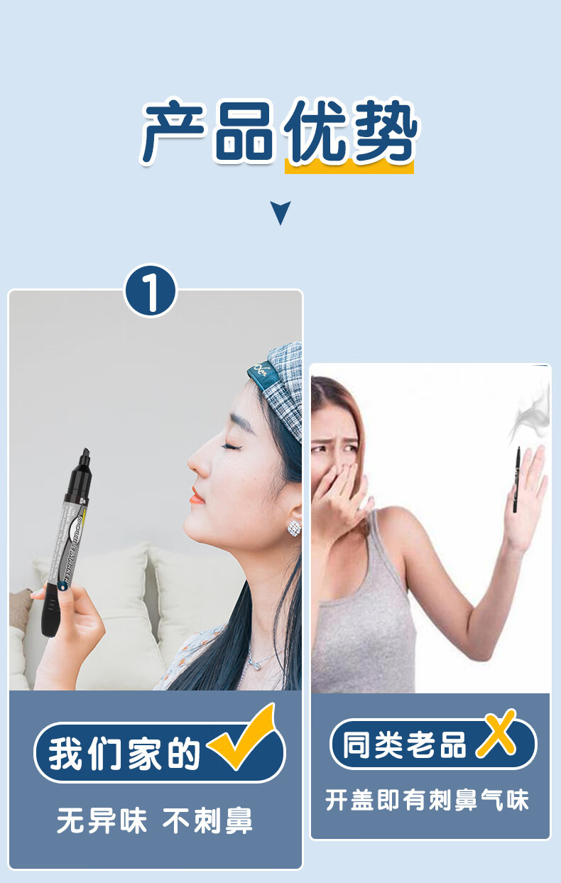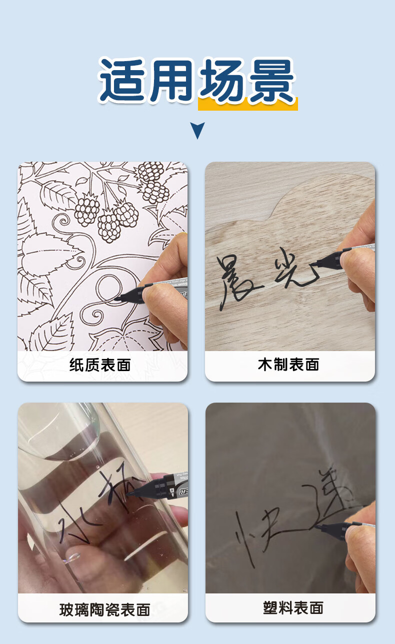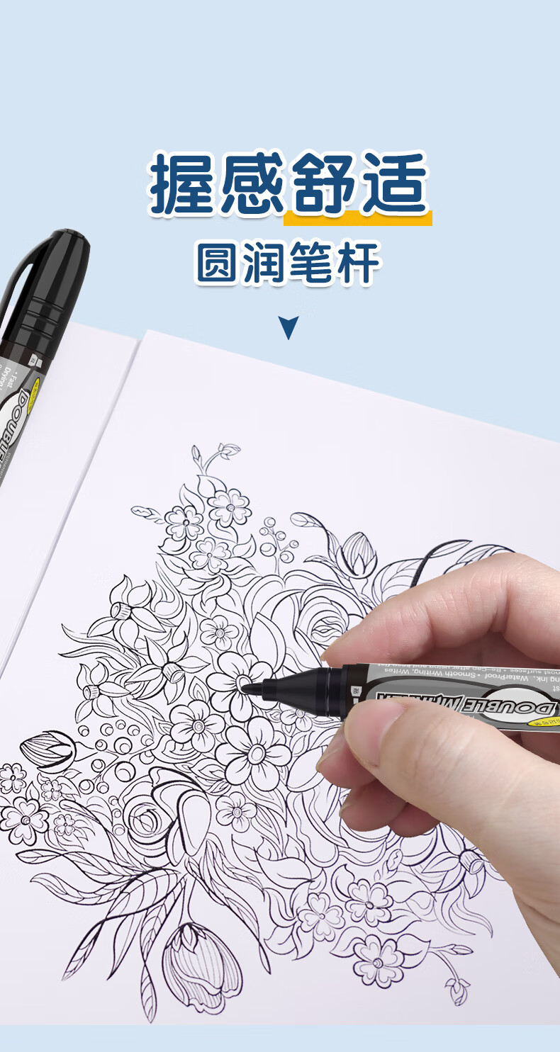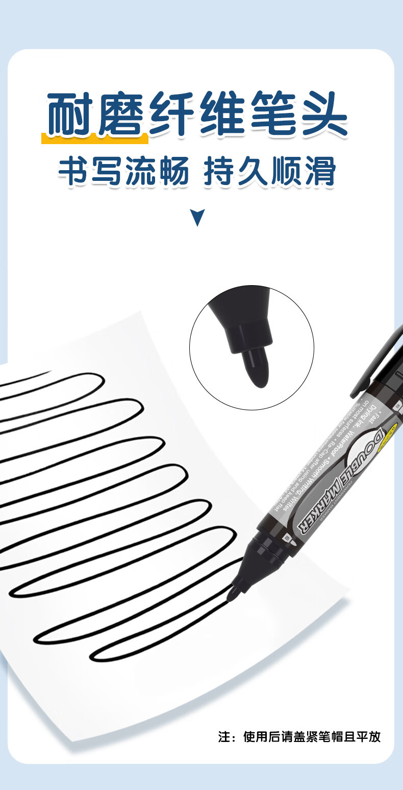 晨光XPMV7403油性小双头记号笔勾线笔美术黑色速干防水防油不掉色