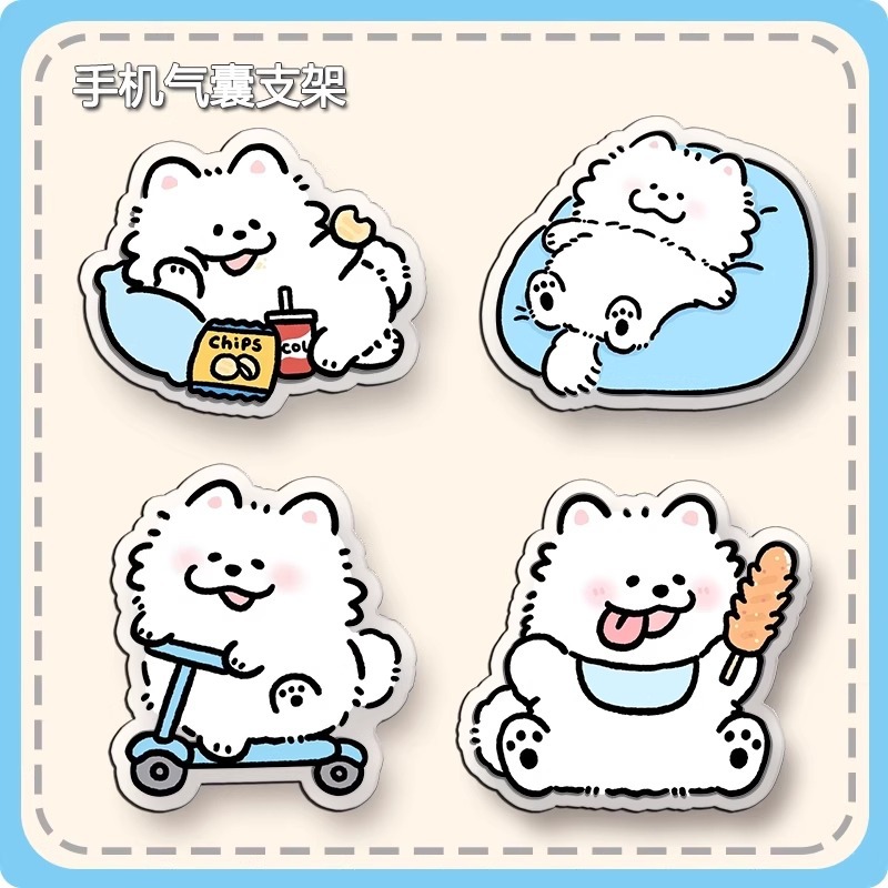 手机气囊支架可伸缩旋转亚克力萨摩耶Q版滴胶追剧神器ins气囊追剧