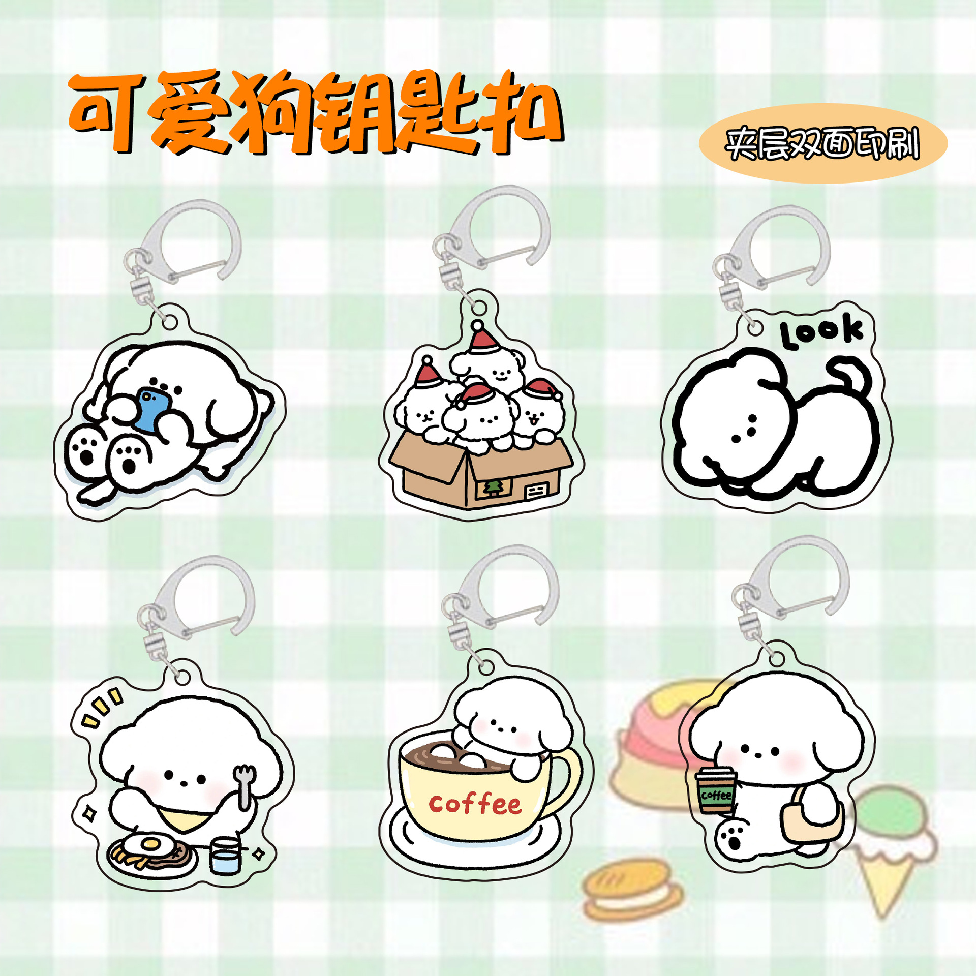 かわいい子犬キーホルダー アクリルペンダント 修犬 面白いバッグ飾り 親友 カップル キーホルダー カスタム