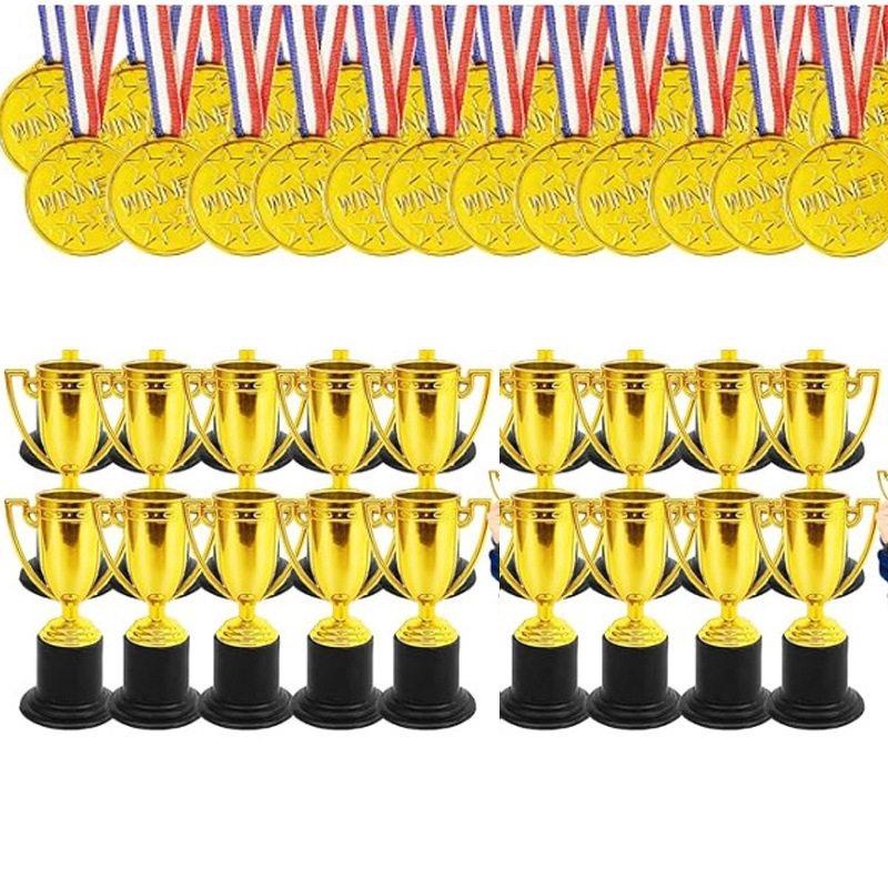 幼稚園のパーティーの栄誉の金色の小さいトロフィーのおもちゃの子供の授賞のプラスチックのトロフィーのミニの道具のメーカーは卸売りします。