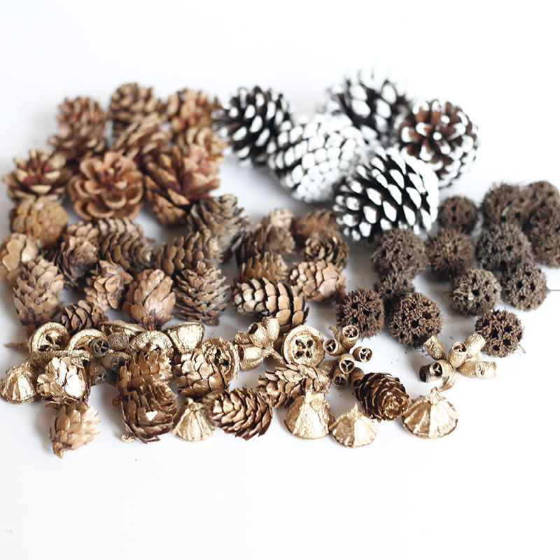 クリスマス松果松塔金色銀色ユーカリ果十字果蓮蓬頭花輪diy材料落葉松