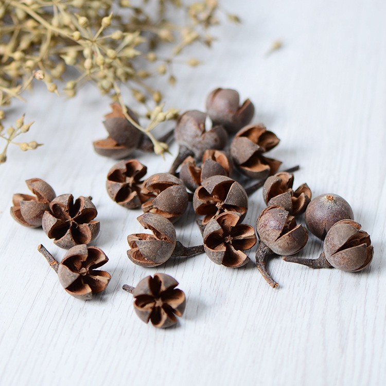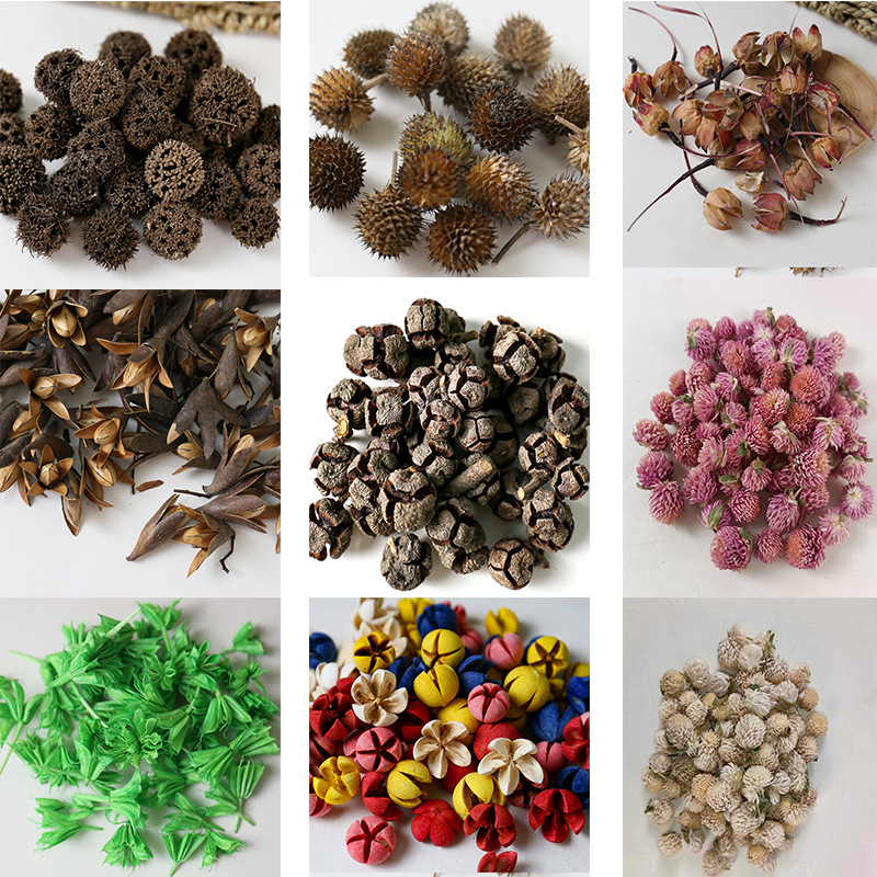 十字果小白果路路通和尚头干花干果diy教学团扇相框装饰材料包