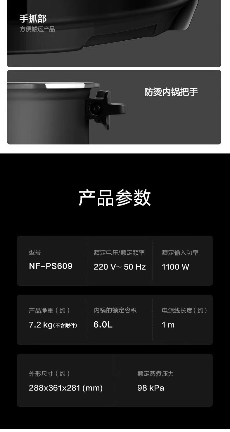 パナソニック/PanasonicNF-PS509 スマート電気圧力鍋 家庭用多機能圧力鍋 大容量