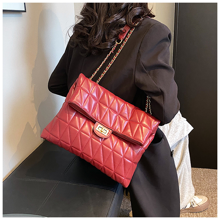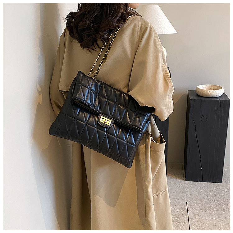 ネット赤小衆デザインins菱格斜めショルダーバッグ女性2025春夏ファッション新大容量チェーンシングルショルダーバッグ