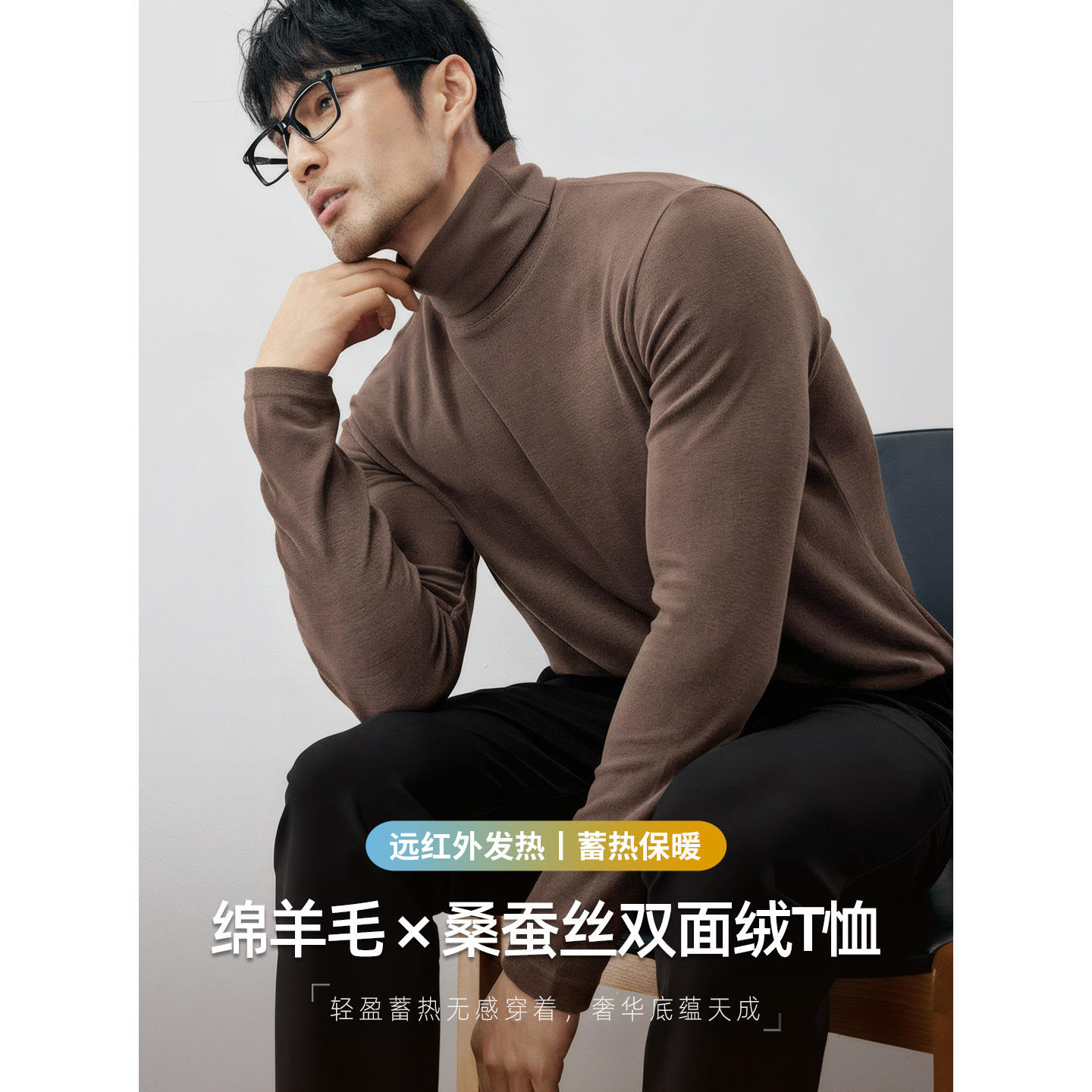 CloudWeave™液氨云感丝光棉高领打底衫男士秋冬垂感亲肤长袖T恤