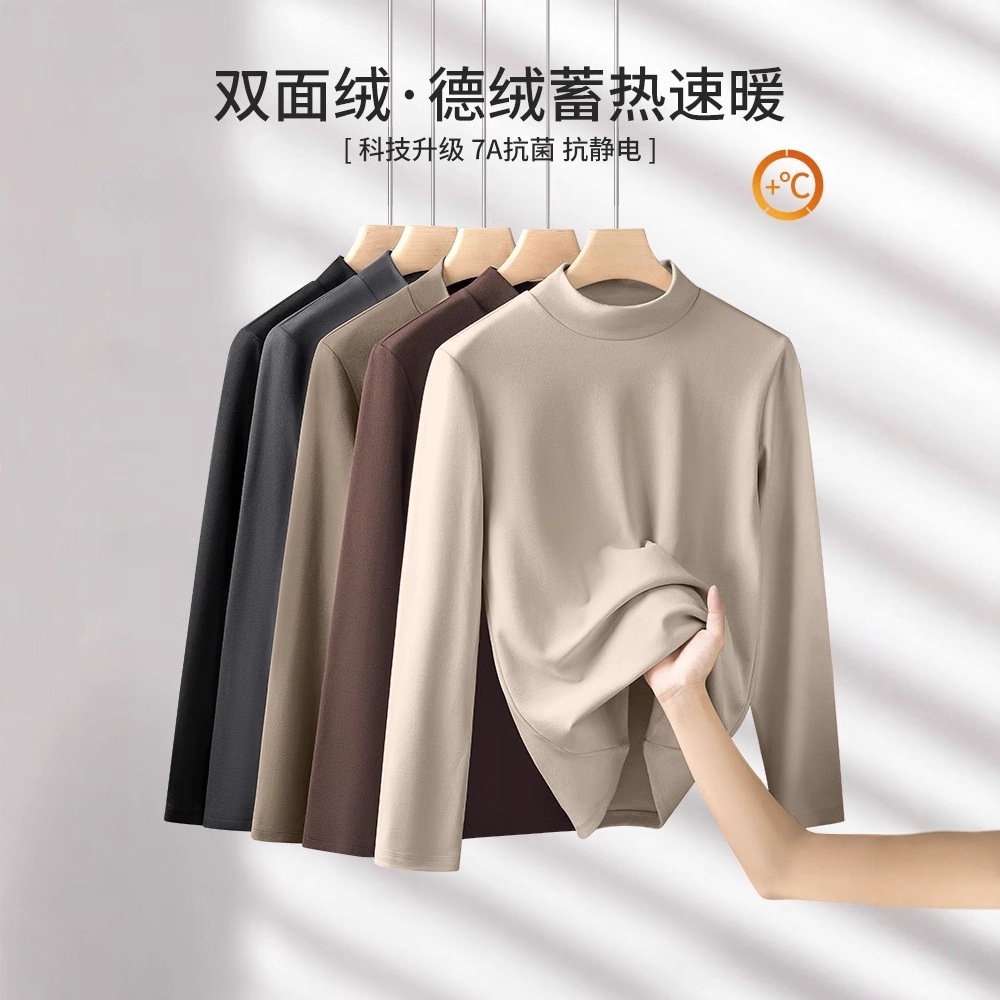 轻奢级【双面绒德绒】半高领保暖打底衫男长袖双面磨毛加绒上衣男