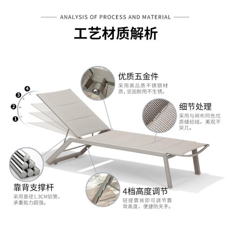 屋外レジャーテスリンアルミ管角管横ベッドビーチベッド防水日焼け止め庭横ベッド海辺ビーチ横
