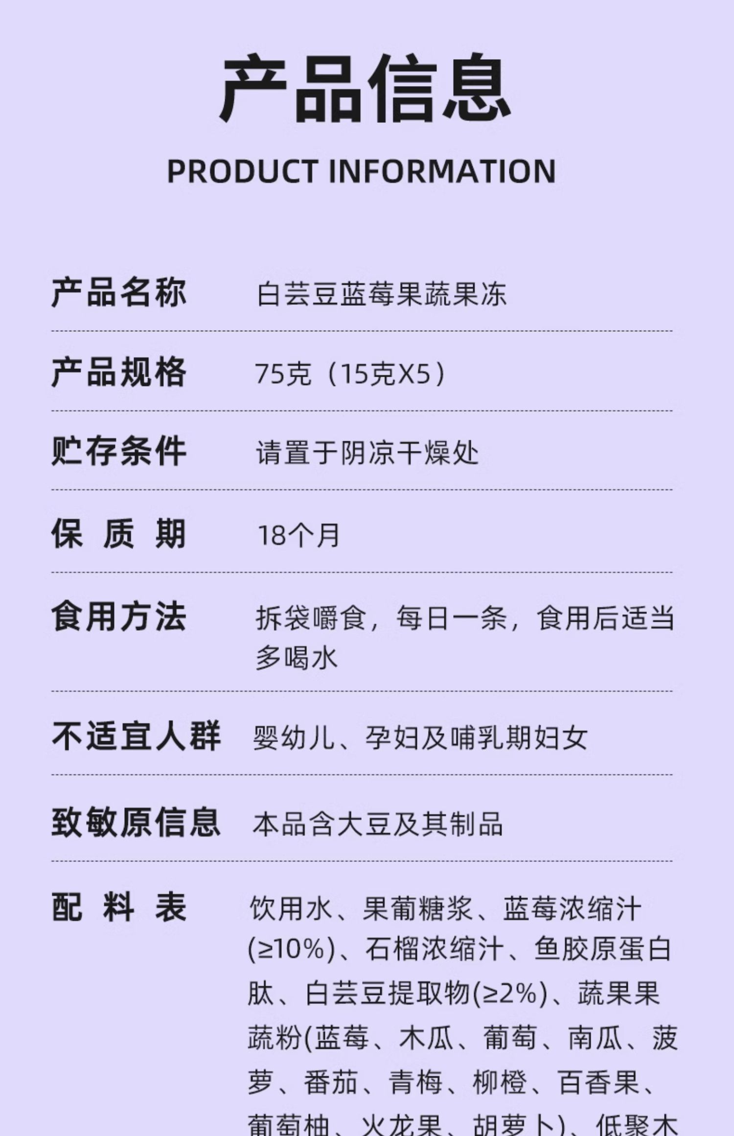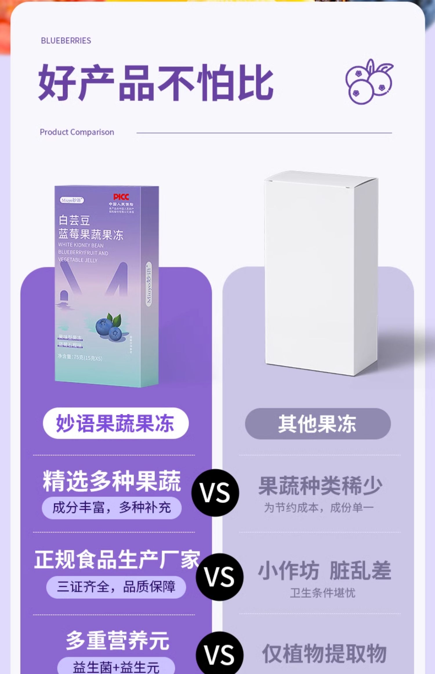 妙語ブルーベリー果物野菜植物益生元白芸豆果物野菜益生菌非粉ゼリー