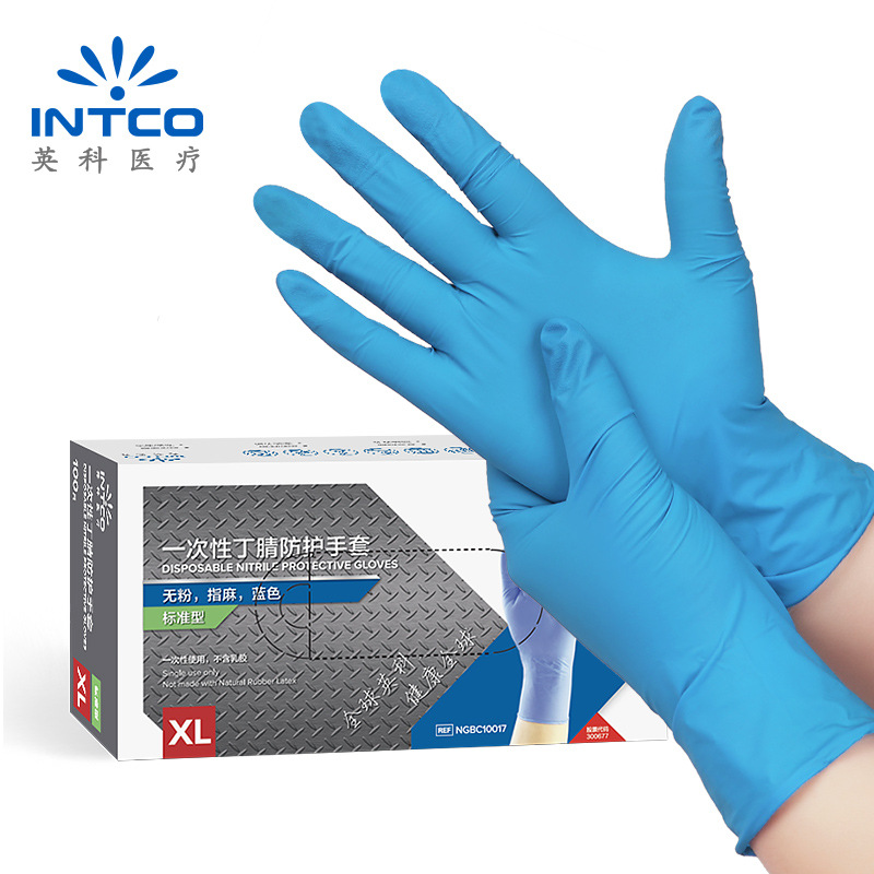 英科使い捨てニトリル手袋ブルー工業修理酸アルカリ実験防護ニトリル手袋無粉卸売り