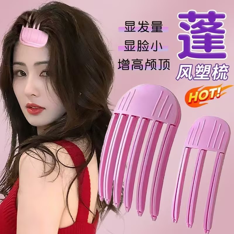 女性用風成形コームパッド、毛根ヘアピン、ネットセレブの頭頂部を高めるツール、額と頭頂部のふわふわ前髪スタイリングコーム