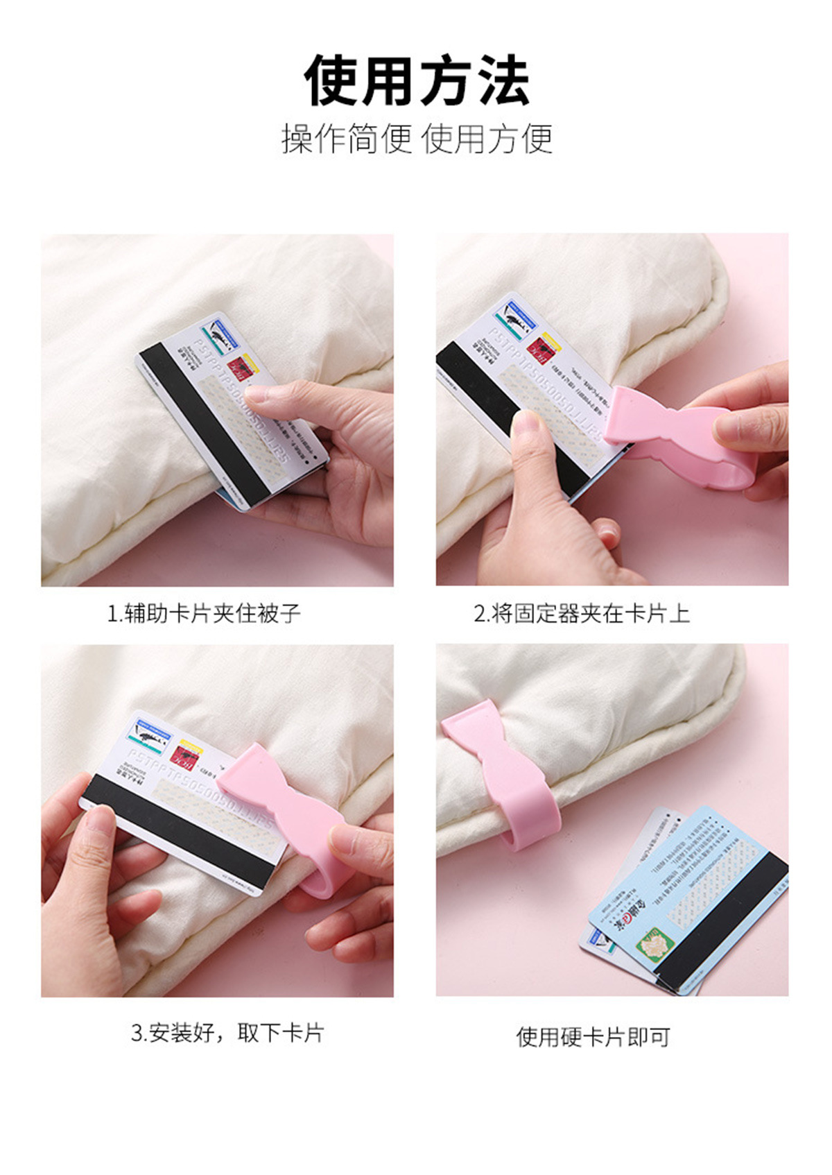 針を使わない安全な布団固定具、布団のずれを防ぐ家庭用綿布団カバー、布団の角を滑り止めする布団カバークリップ、布団芯を固定するクリップ