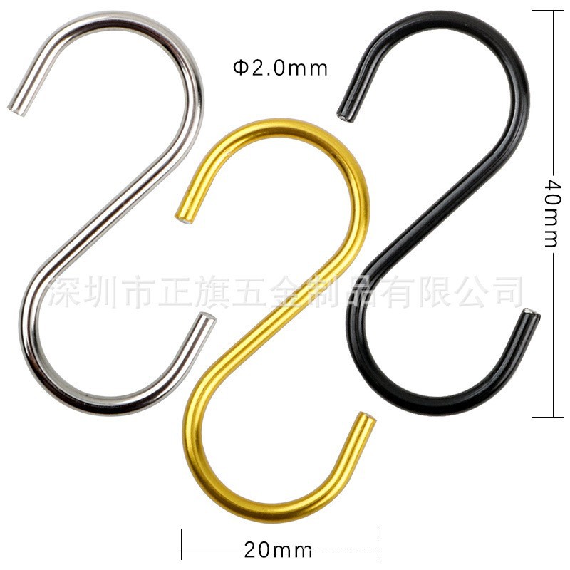 源头厂家黑金银三色金属S型挂钩不锈铁钩 包塑环保S挂钩 S勾跨境