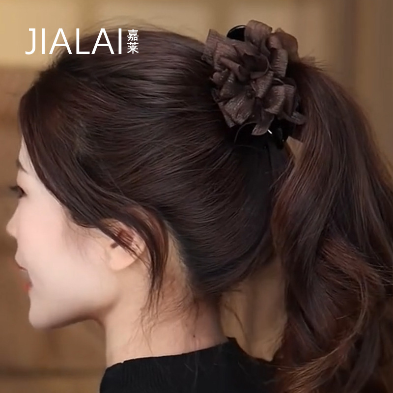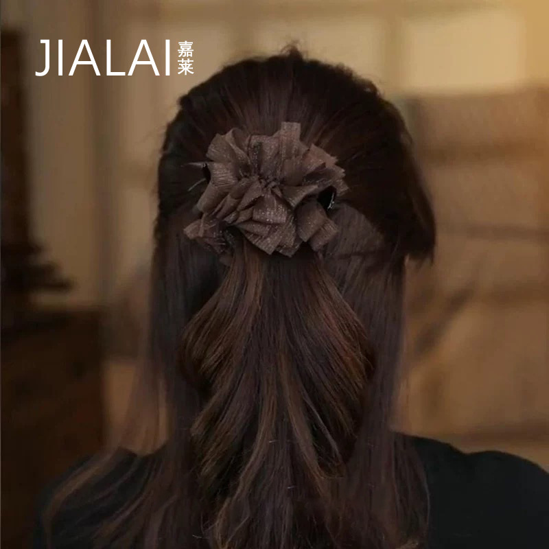 铂思亚光阴之诗发夹法式纱面褶皱花苞丸子夹简约百搭马尾抓夹头饰