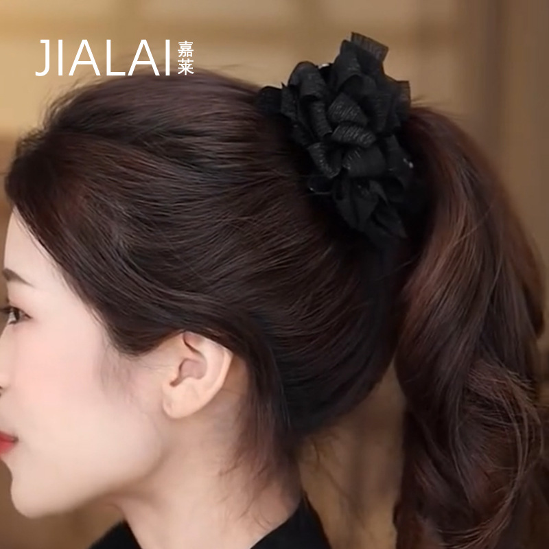 花苞香蕉夹黑色蝴蝶结发夹显发量高级感马尾夹后脑勺盘发竖夹头饰