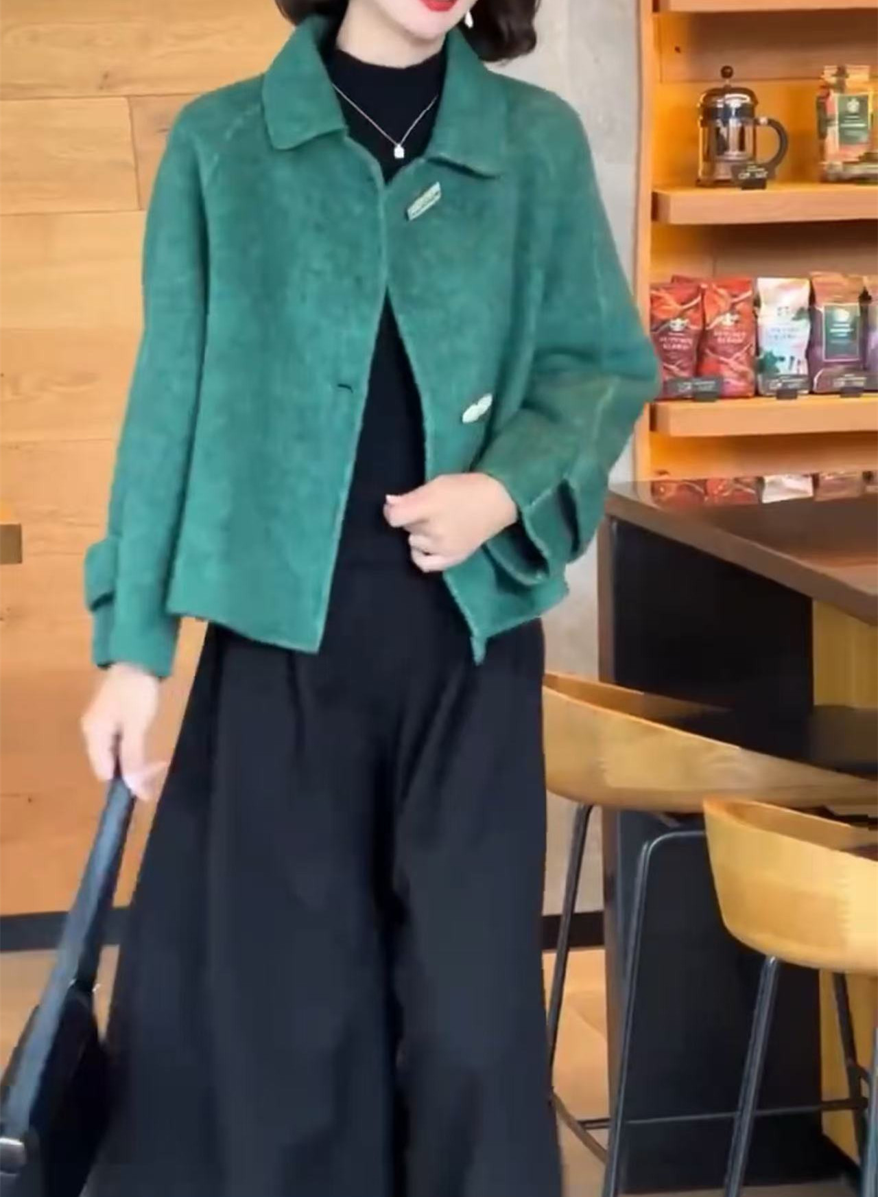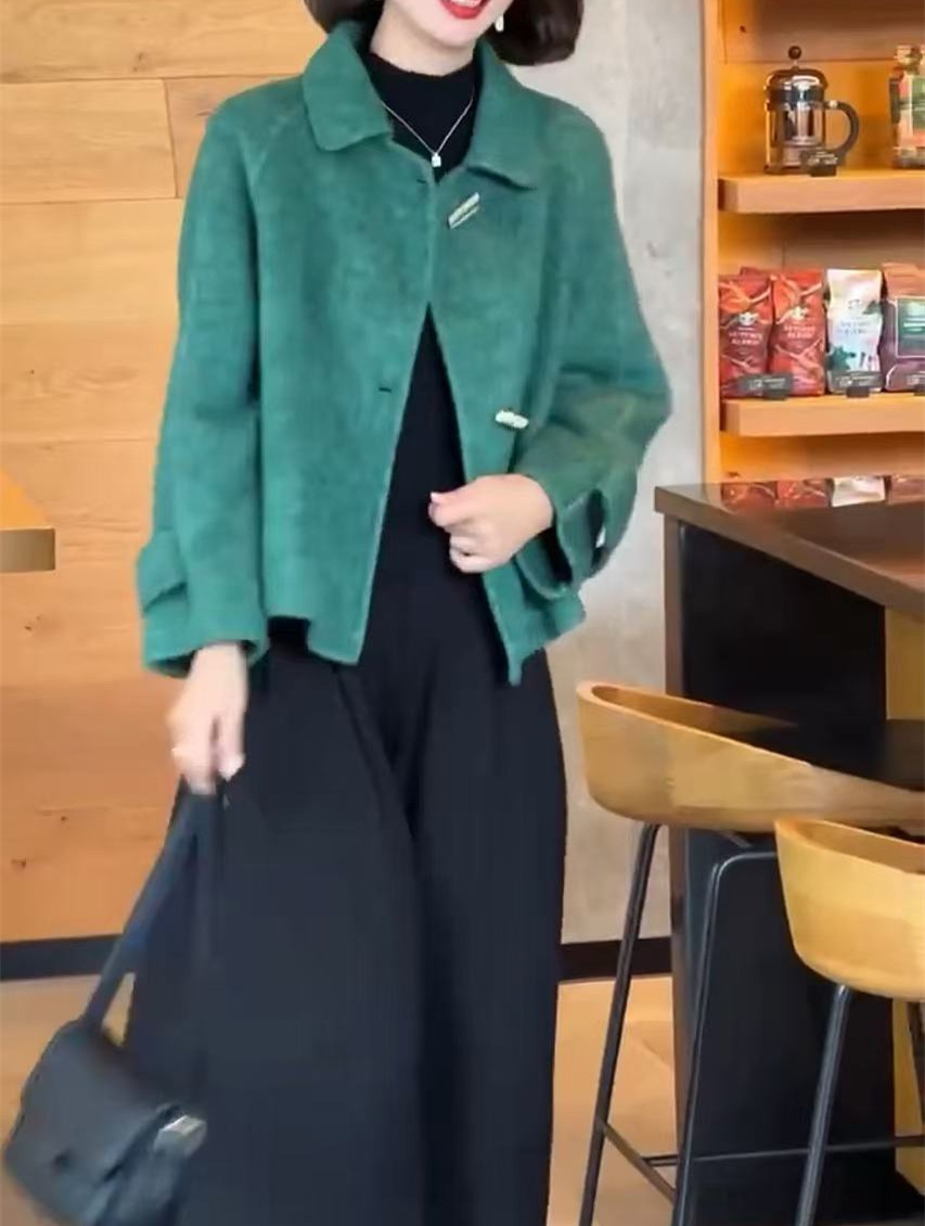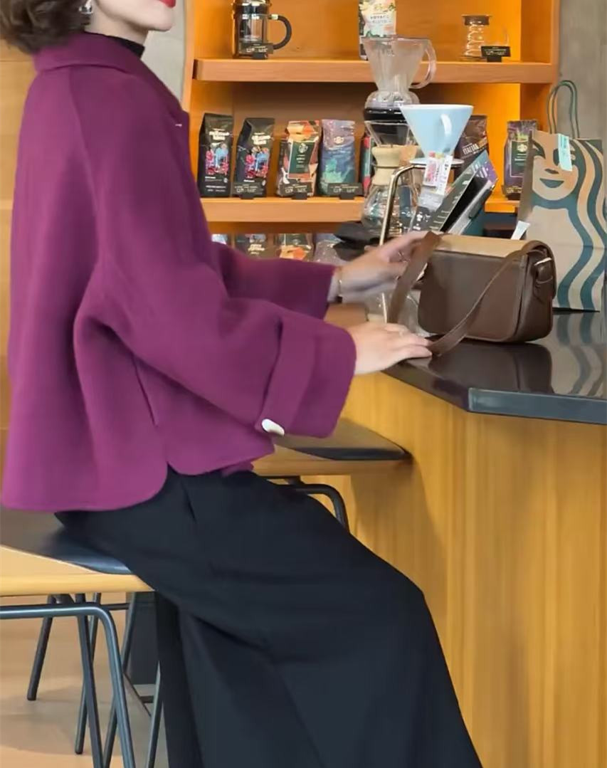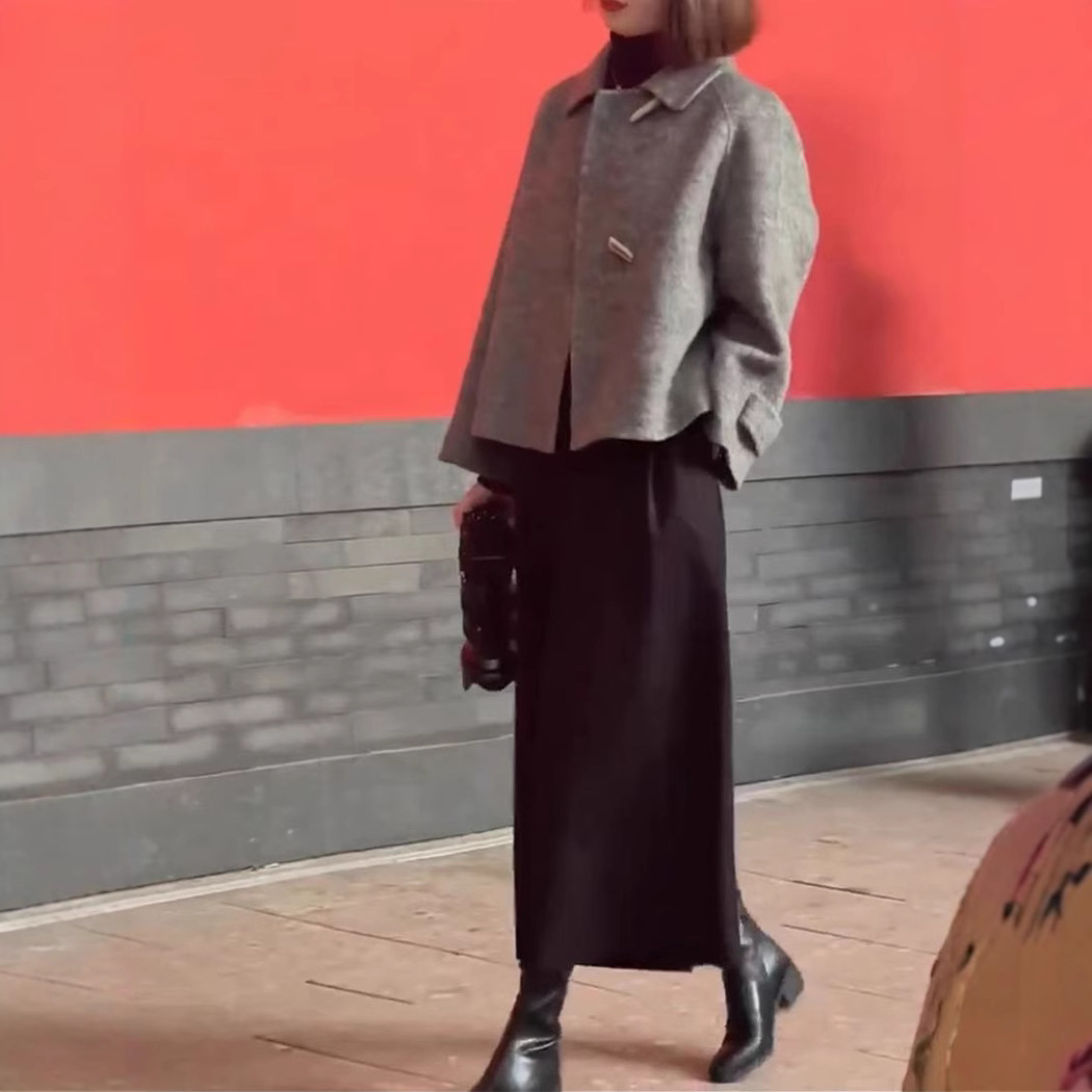 241097大愛美依源2025新作高級感ゆったり襟付きウールコートカジュアルワイドパンツ女性用