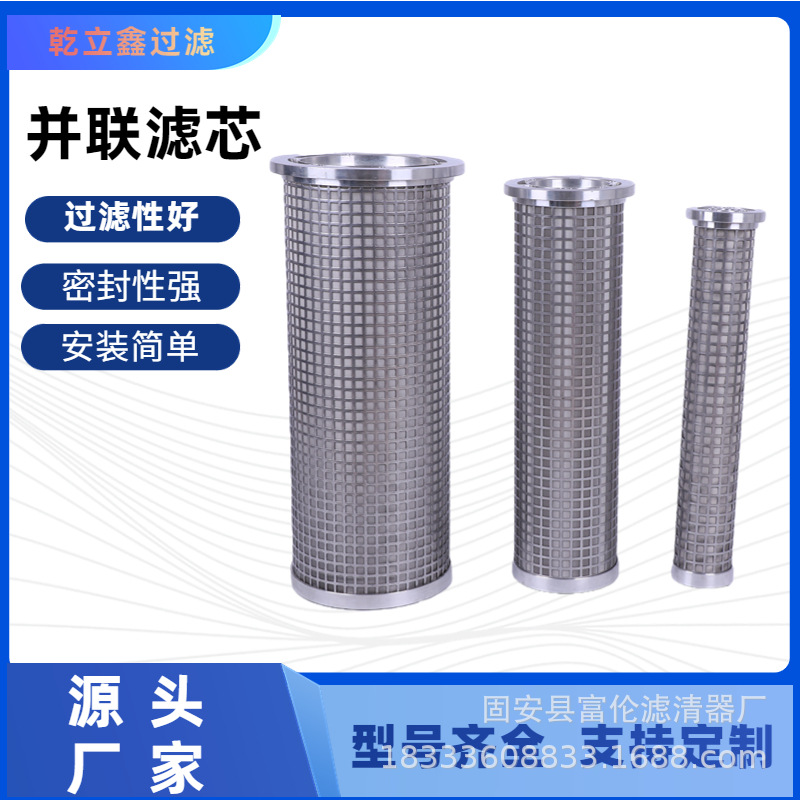 公司 生产:双并联滤芯,三并联滤芯,三并联液压滤芯,并联油滤芯是由从小到大几个过滤器并联在一起所组成,具有体积小、过滤面积大、拆装简单、清洗方便等特点,用于大流量液压润滑系统。