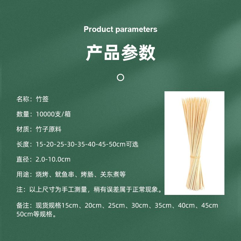 メーカー直販使い捨てバーベキュー竹串子3.0*6.0mm平串長さ任意