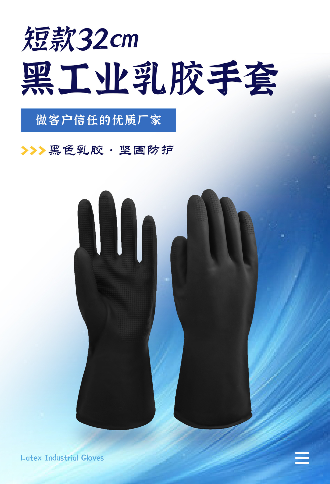 スポット速発防化酸アルカリ32cm黒色工業耐油滑り止め炭鉱ラテックス防護労働保護手袋